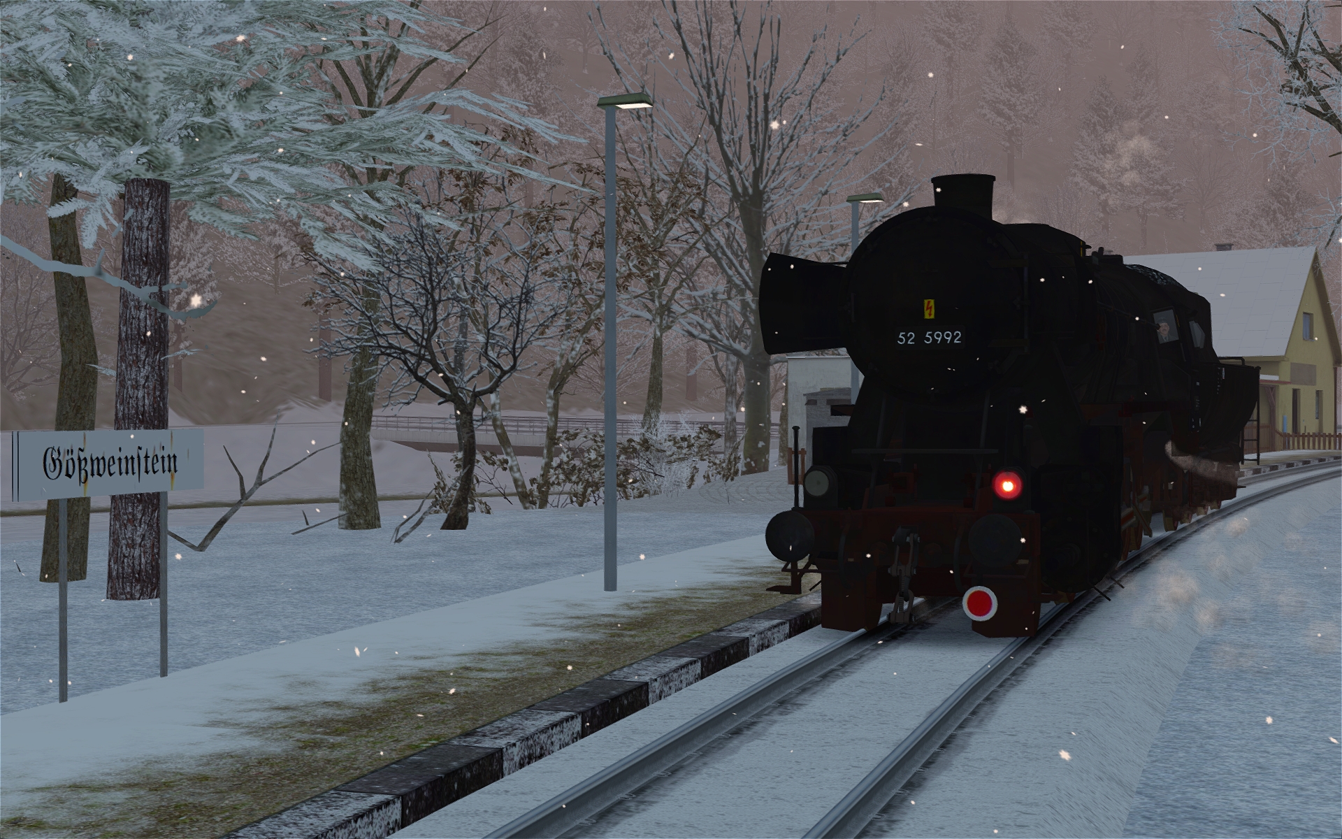 Bilder von der heutigen Testfahrt: Bahnhofsschilder erstellt (halb real, halb Paint) und kleinere Details gesetzt und Dinge angepasst, vor allem Bü. Vor Gößweinstein dann ein Dump bei nicht einmal 2 GB Ramverbrauch, aber beim Laden einer Kachel mit über 3400 Objekten. Ist das eventuell schon wieder zu viel für den TS? Ich könnte es auf knapp 3100 reduzieren, indem ich den Wald dort etwas auslichte. Ansonsten könnte ich schon wieder kotzen ... Hab es dann gleich für den ersten Wintertest genutzt.