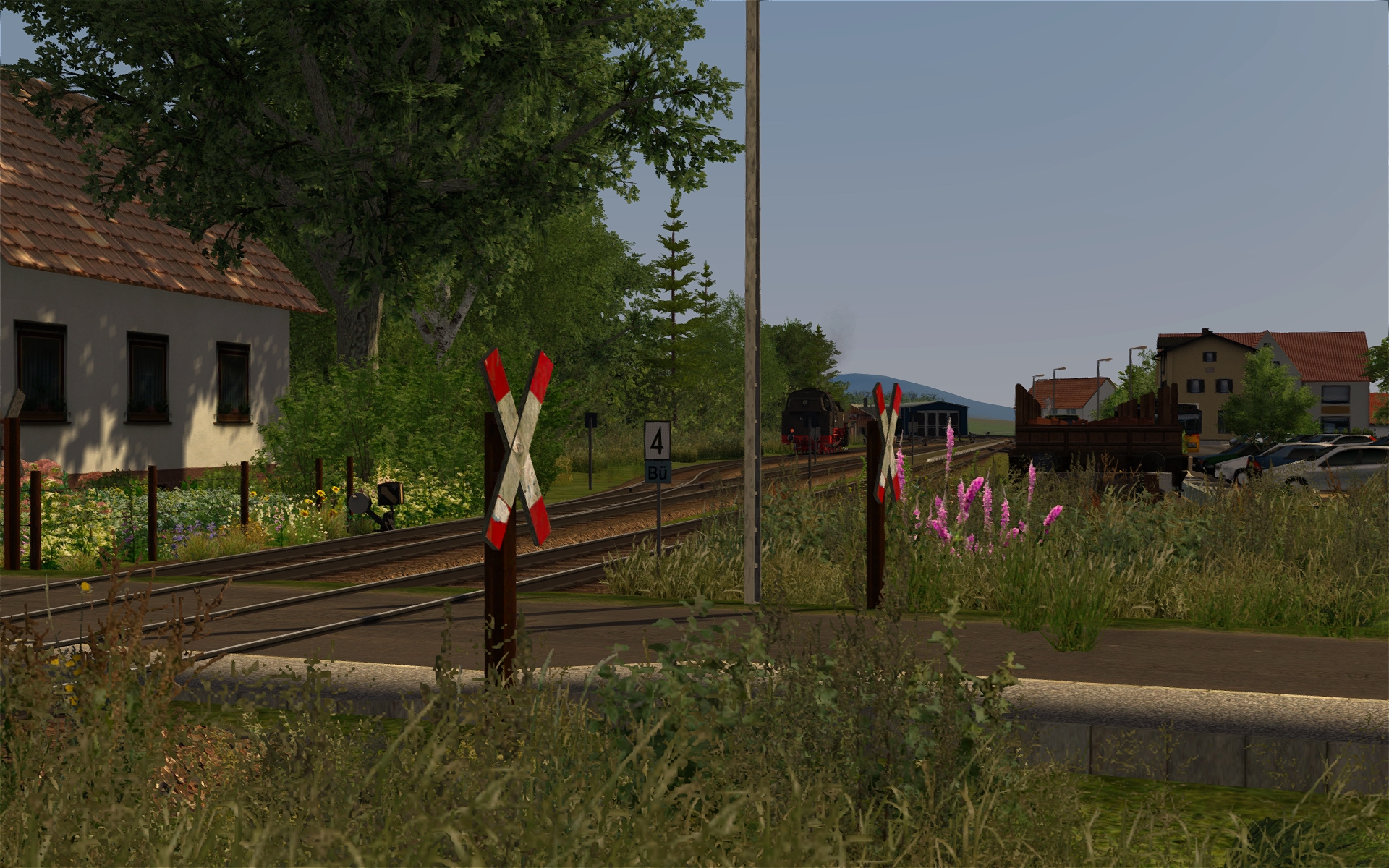 Bilder von der heutigen Testfahrt: Bahnhofsschilder erstellt (halb real, halb Paint) und kleinere Details gesetzt und Dinge angepasst, vor allem Bü. Vor Gößweinstein dann ein Dump bei nicht einmal 2 GB Ramverbrauch, aber beim Laden einer Kachel mit über 3400 Objekten. Ist das eventuell schon wieder zu viel für den TS? Ich könnte es auf knapp 3100 reduzieren, indem ich den Wald dort etwas auslichte. Ansonsten könnte ich schon wieder kotzen ... Hab es dann gleich für den ersten Wintertest genutzt.