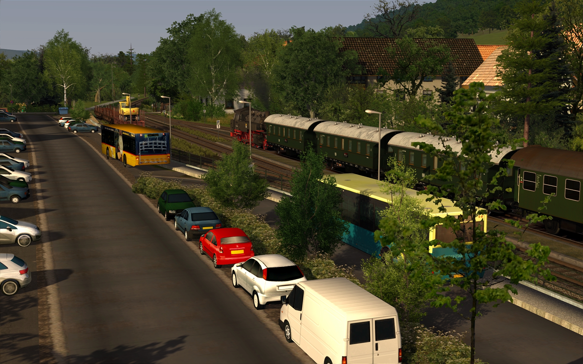 Das direkte Bahnhofsumfeld von EBS ist damit eigentlich so gut wie fertig. Noch ein paar Häuser im Hintergrund, dann geht es wieder zu den Dörfern, die ich auch noch bauen muss. Der Auftakt der DFS im Jahr 2016 ist auf den Bildern zu erkennen - bis dahin sollte die Strecke dann auch erhältlich sein. Dies ist zumindest mein angestrebter Releasetermin. Kannst also schon deine Fahrkarte kaufen, @CarstenV ![]()