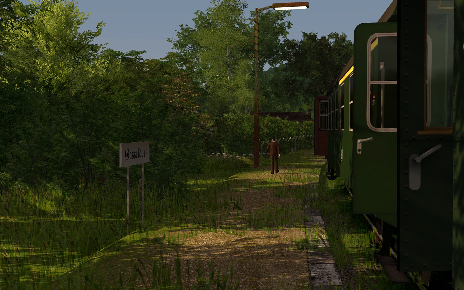 Der war nur provisorisch gesetzt worden. Heute war wieder Repaint-Tag. Endlich konte ich das Gleis für die DFS fertigstellen: Stahlschwellen auf grauem Schotter mit wenig befahrenen Schienen. Wurde gleich eingebaut, ein Museumsschild für die DFS passend gemacht und auch der Bahnsteig bereits geändert.