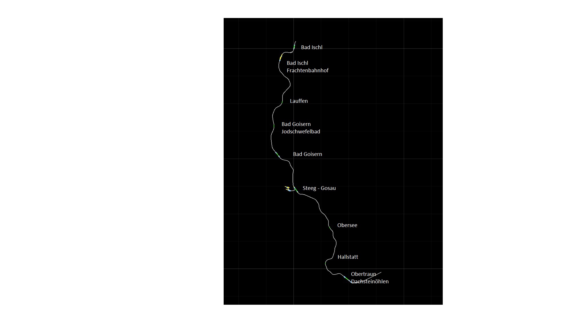 Ich möchte hiermit meine Strecke vorstellen - die Salzkammergutbahn. Die Strecke beginnt in Attnang-Pucheim (Oberösterreich) und geht nach Bad Ischl entlang des Hallstättersees. Endlich endet sie in Stainach Irdning (der Steiermark). Die Gleise sind von Bad Ischl bis Obertraun verlegt, Signale und Oberleitungen sind schon fertig.. Wenn die Landschaft auch fertig ist, baue ich die Gleise bis Stainach (oder Attnang) weiter.