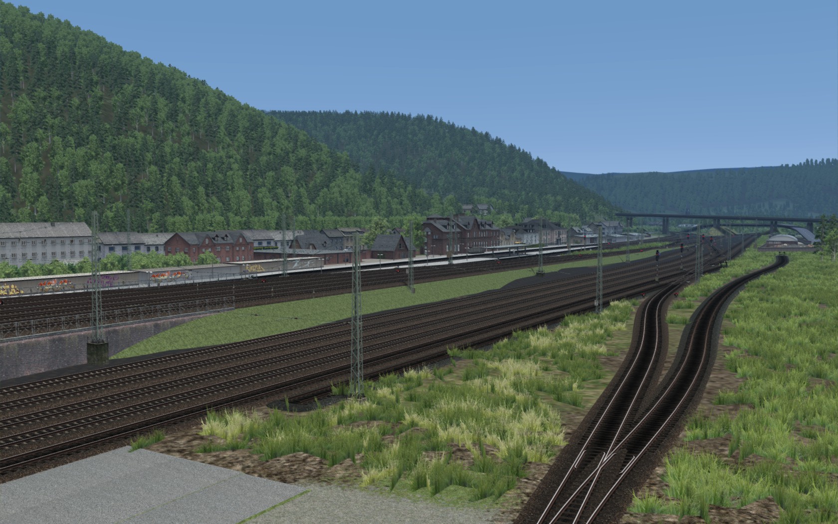 als Grundlage, hier und da noch ein paar Grassbüschelchen hin platzieren, streckennahe 2D Baüme gegen 3D ersetzten und dann kan sich das sehen lassen. Evtl den Trier HBF gegen den von der Mosel ersetzen, Gleise tauschen und Fertig.