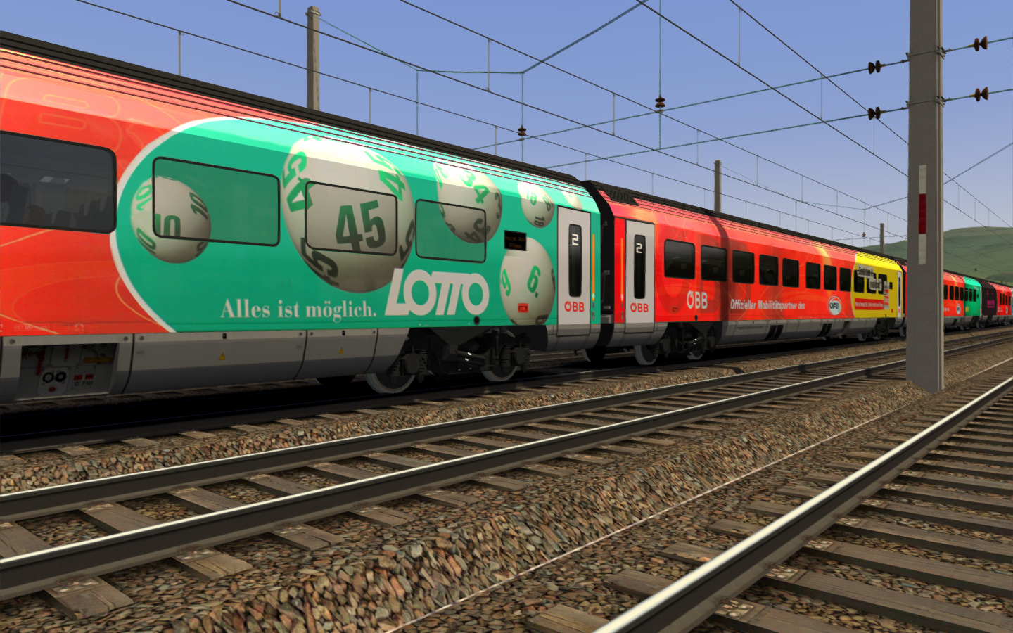 Gleichzeitig hat Dispo fuer uns zwei neue Repaints gemacht. Die OEBB haben ja inzwischen zwei neue railjets rausgebracht und er hat sich auf den Weg gemacht diese zu fotografieren und Re-paints zu machen (bereits mit dem neuen, sparsamen Mapping).