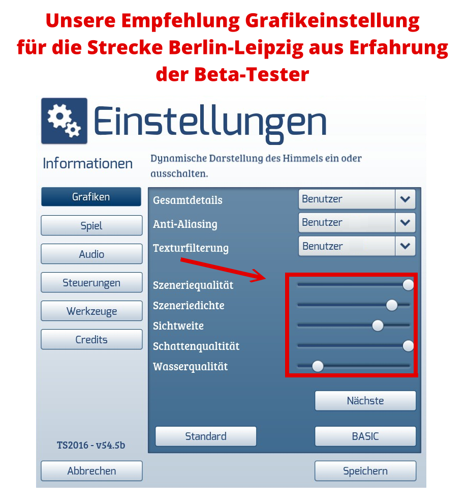 Szeneriedichte MUSS IMMER auf MAXIMUM stehen. Vor allem weil 99% der User das einmal einstellen und dann nie mehr ändern. Somit kommt es auf anderen Strecken dann zu fehlenden Objekten. Die Empfehlung kann man so also knicken.