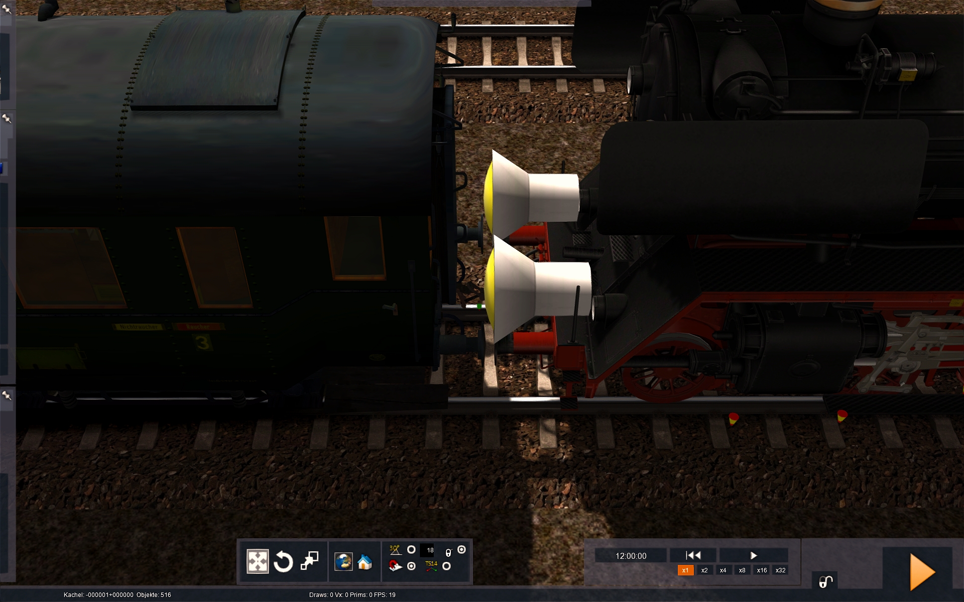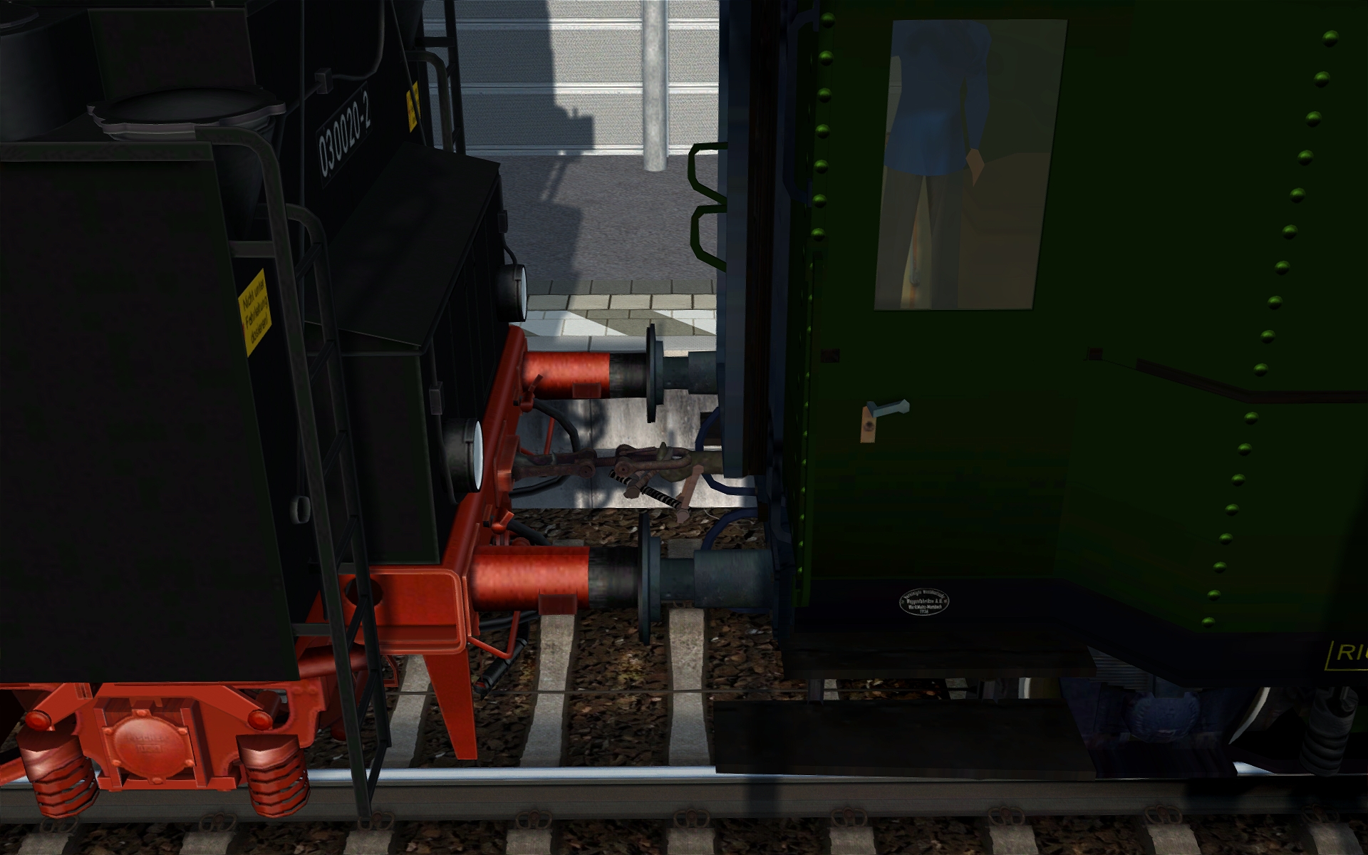Ich bin gerade dabei, die aus dem MSTS konvertierte BR 03 auf Beekays 03 umzuschreiben, was Sound, Fst und Script anbelangt. Hat auch alles wunderbar geklappt, nur ist mir nun aufgefallen, dass es mit der Lok ein Kupplungsproblem gibt, welches nichts mit meiner Arbeit zu tun hat: Generell sind die Puffer beim Start ineinander geschoben, und bleiben es auch. Entkuppele ich vom Wagenzug, passiert ersteinmal gar nichts außer dem optischen Fehler. Ich kann normal abkuppeln und wieder ankuppeln. Kuppele ich aber bei Doppeltraktion eine Dampflok von der anderen ab, hüpft die vordere 5 Meter nach vorne. Wenn sie mal nicht entgleist ist und ich wieder zurückfahre, um wieder anzukuppeln, trifft schön Puffer auf Puffer, aber ich kann die Lok nicht mehr ankuppeln.