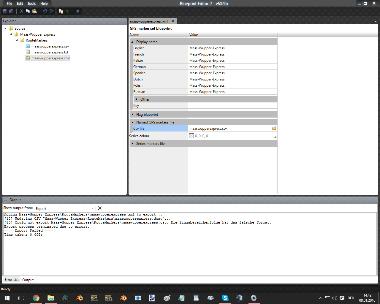 Nach dem ich nun mehr und mehr erfahrung im Editor gesammelt habe, wollte ich nun meine große Strecke anfangen. Und zwar habe ich versucht über den Blueprint editor die xml in den Train Simulator 2016 zubekommen!