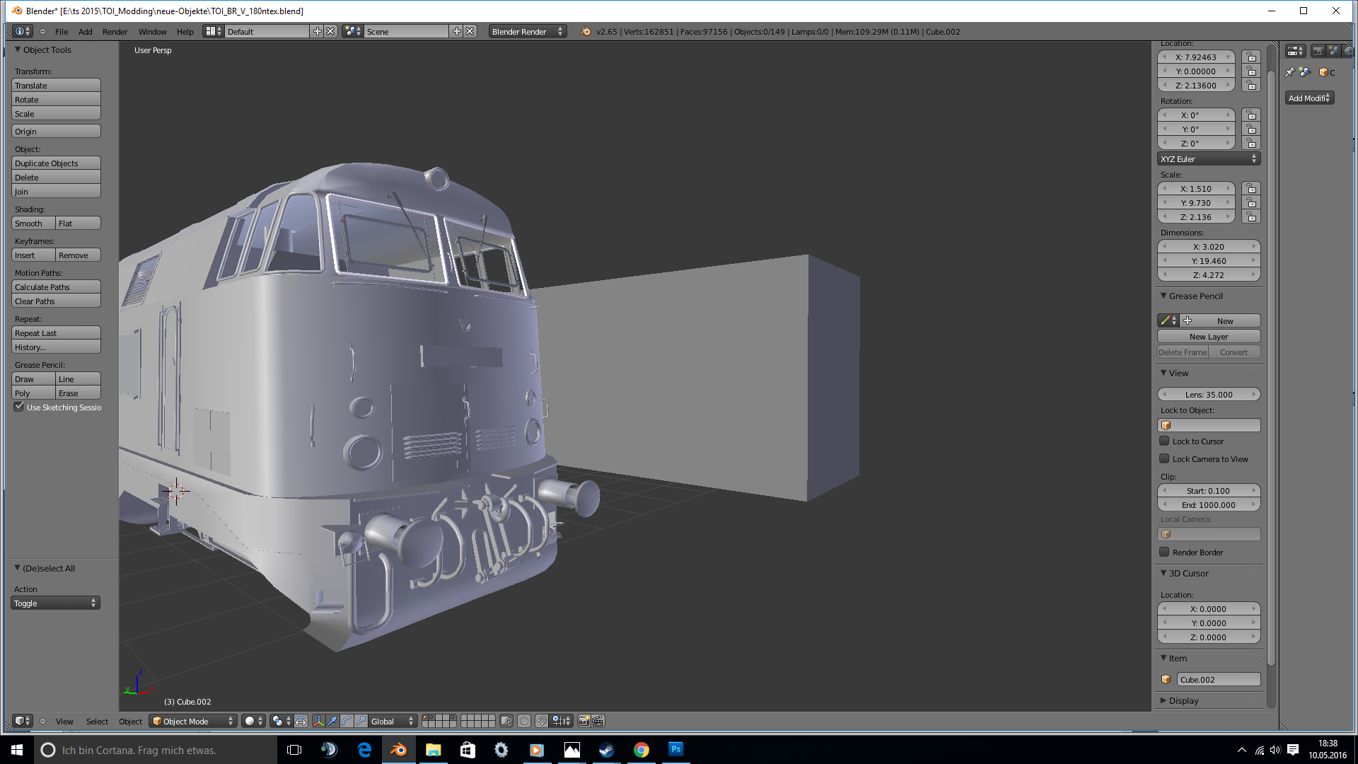 erstmal Respekt für dieses Projekt. Diese BR ist sehr schwer umzusetzen, soviele Rundungen und verschiedene Winkel die dann erst ein stimmiges Bild ergeben.