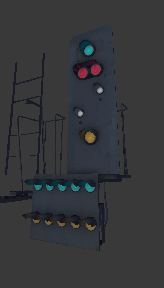 farblich ist die Textur jetzt angepasst und fertig für eventuelles Feintuning. Wer sich davon einen Eindruck verschaffen möchte kann dies gerne über die Bilder im Anhang tun. So wie auf den Aufnahmen zu sehen werde ich entsprechend auch alle anderen Signale texturieren. Wer genau hin schaut wird auch kleine Details finden die eingebaut sind. Sei es für die Rückseite der Optiken oder die Optiken selbst.