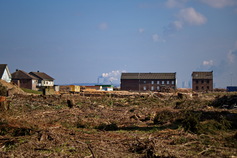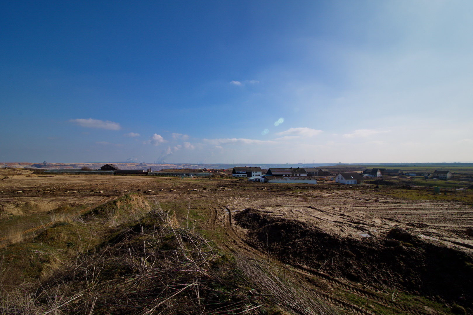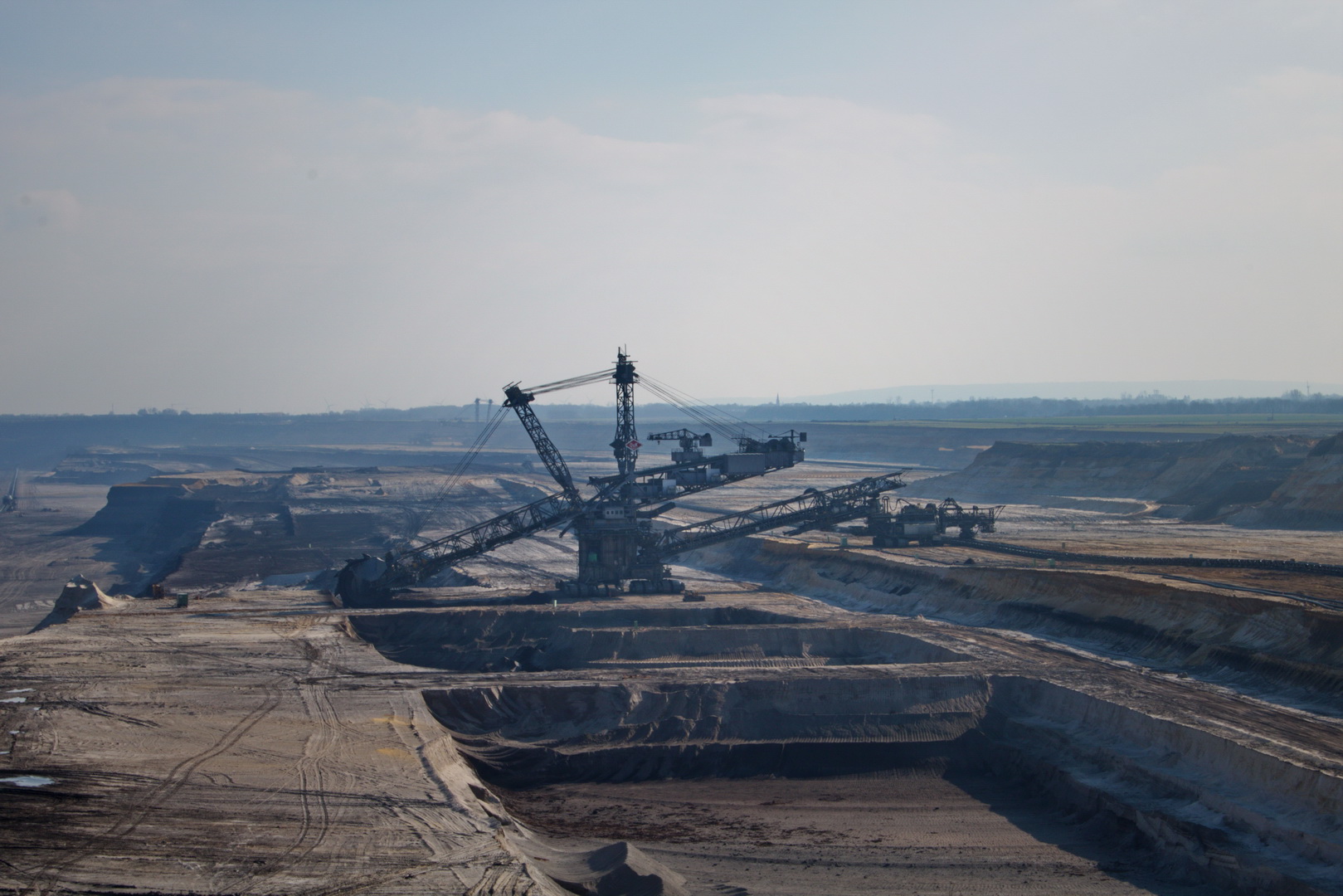 Am Skywalk (der heißt wirklich so) Drei der großen Bagger, die das Loch vergrößern Heimat wird weggerissen ;( Bis vor wenigen Monaten war hier noch Leben Hier war mal der Ort Borschemich Die Ostseite wird bereits wieder zugeschüttet Für die Menschen dort muss es ein Hohn sein, dort Windkraft- Anlagen zu sehen