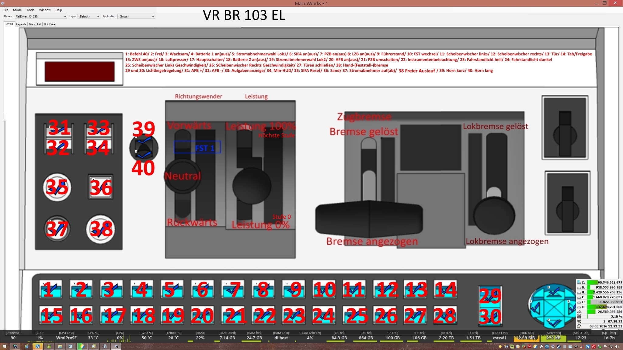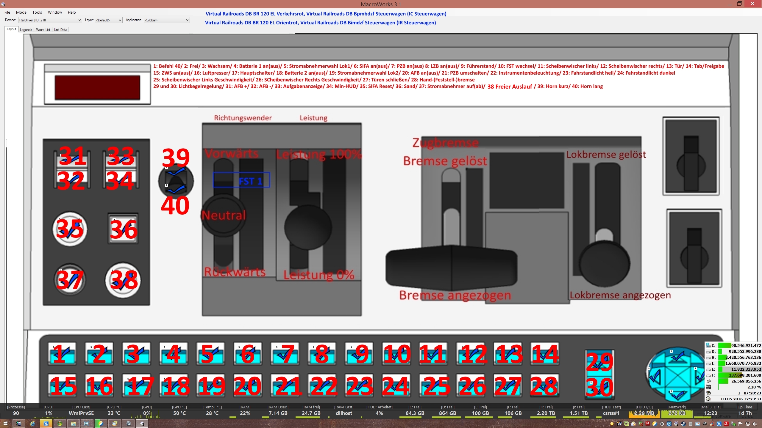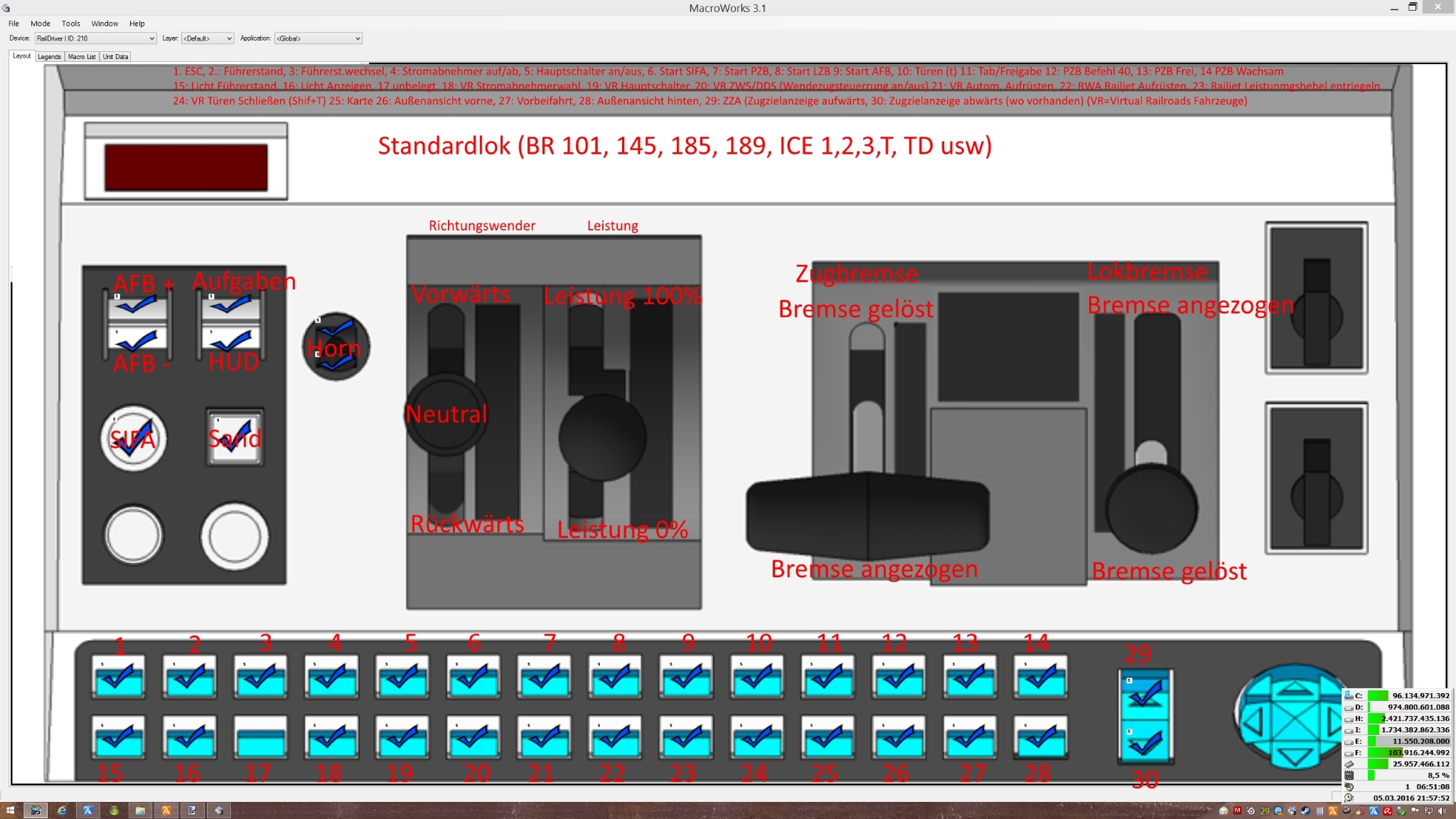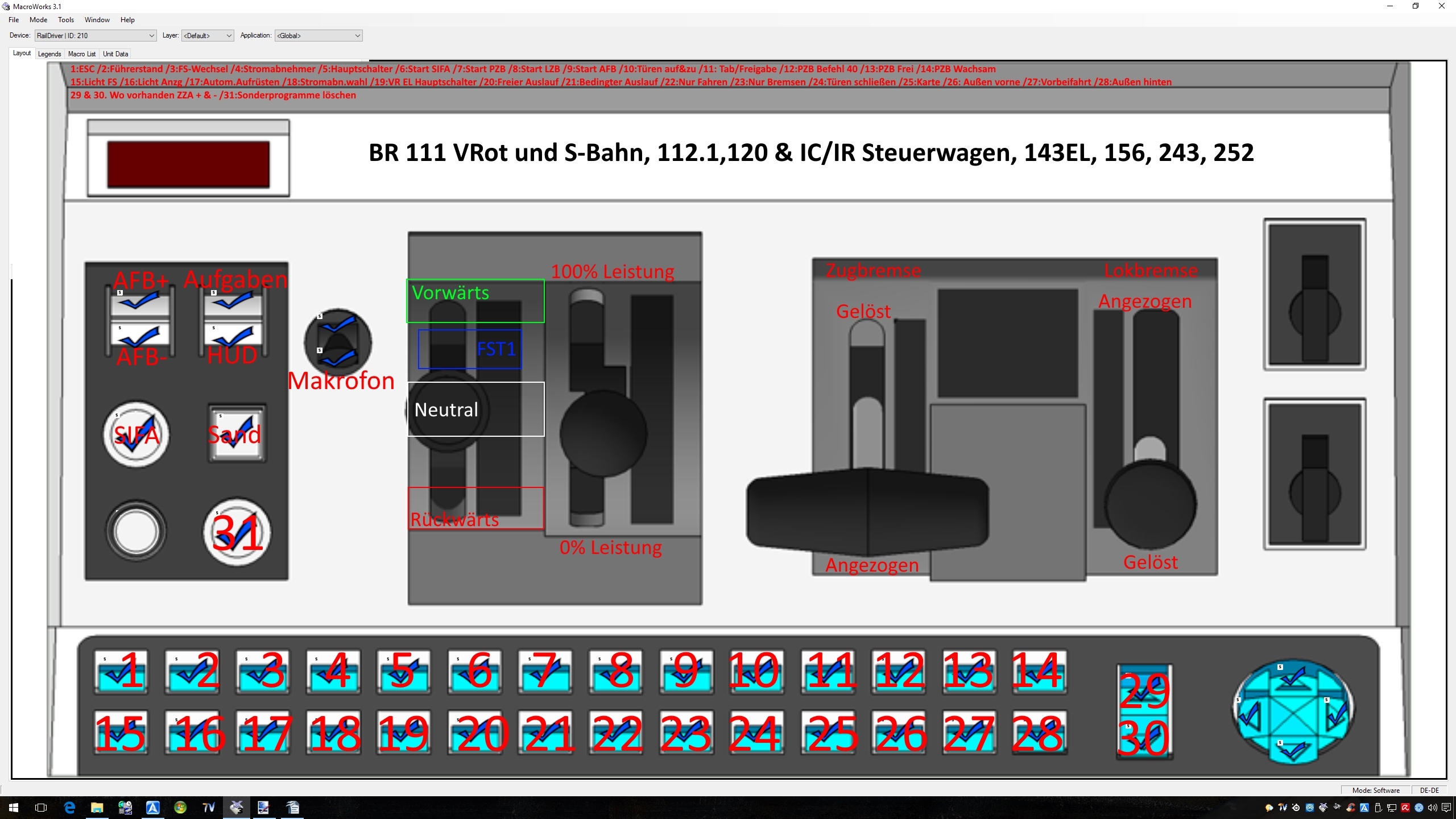 Vorraussetzung: Die Belegung der frei Programmierbaren Tasten auf den RD richten sich nach dem hier erhältlichen VR-Tastaturbelegungen.