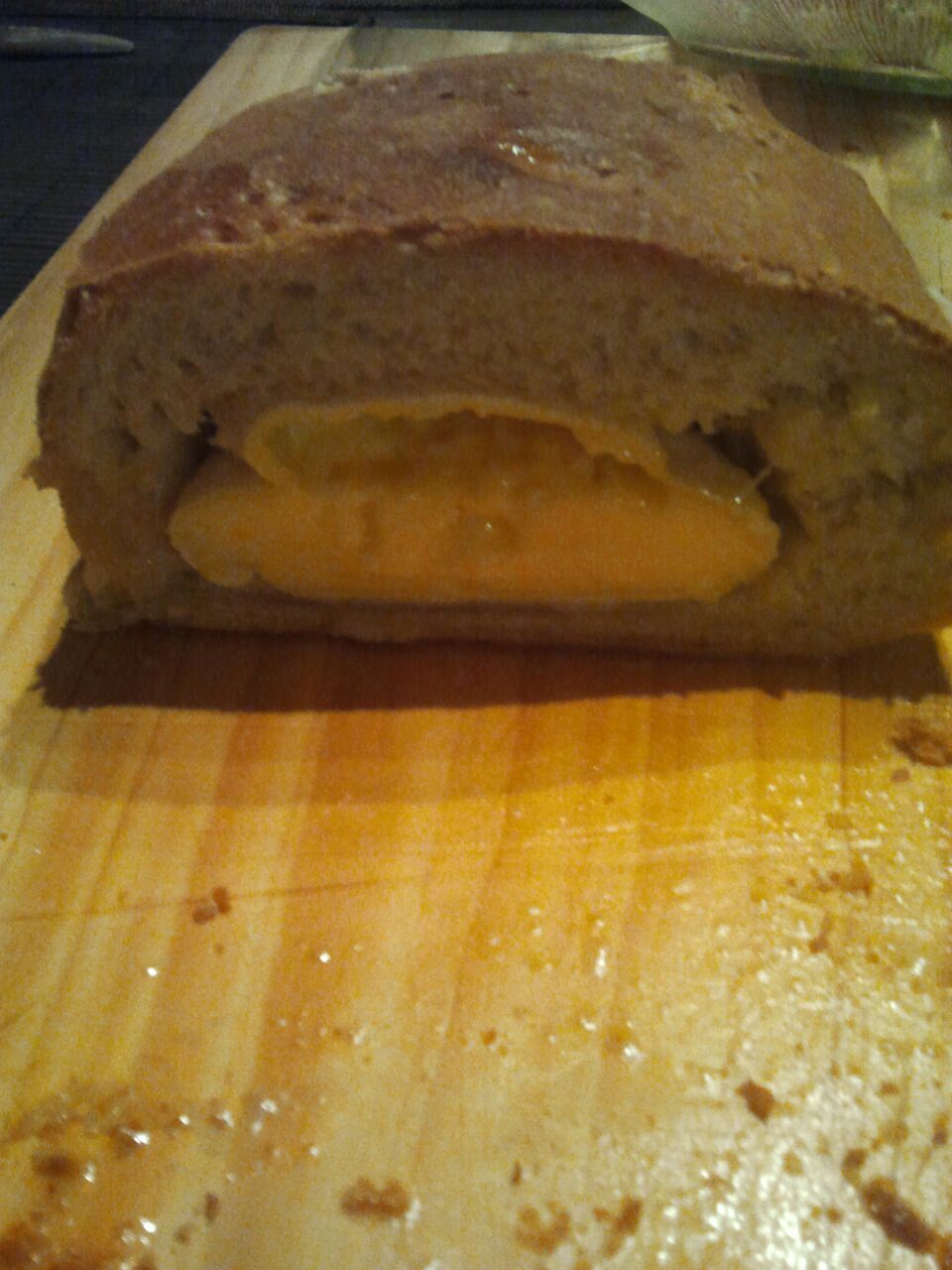 Und schon wieder Brot. Hab ich gleich einen ganzen Camembert eingebacken. Sollte nach Möglichkeit aber auch gleich verzehrt werden was hier aber kein Thema war.