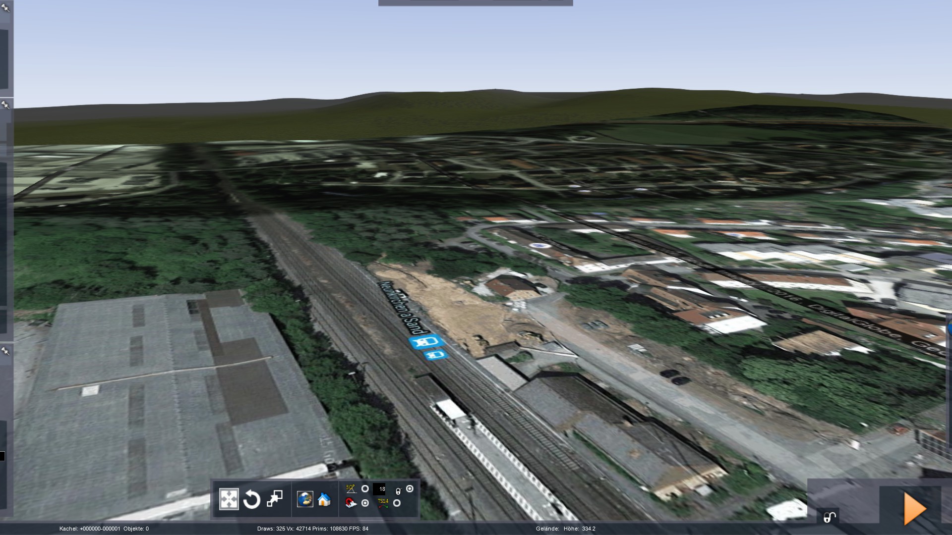 "mit DEM-Gelände"... das kann nicht sein, dann a) ist der Horizont gerade wie mit dem Lineal gezogen und b) kann man im Bild unten in der Statusleiste sehen, dass sich das derzeit markierte Objekt auf 0,31m über NN befindet. Stattdessen müsste da irgendwas von +/- 330m stehen.