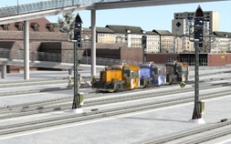 Auf dem mittleren Gleis des Racetracks geht es vorbei am Containerbahnhof Cicero. Im US-Loco/Asset-Pack fand ich zum Glück eine ES44DC in der Lackierung von BNSF, der Marias Pass ist ja außerhalb der USA leider nicht mehr erhältlich.