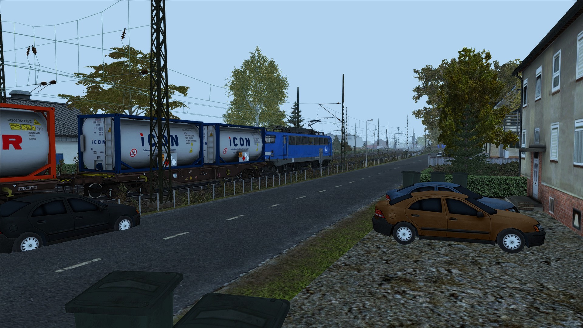 Eine V100 bringt einige alte Güterwagen vom Neustädter Hafen nach Bremen-Grolland. Natürlich mit Schienenbus Gleisen und der TSC Oberleitung.