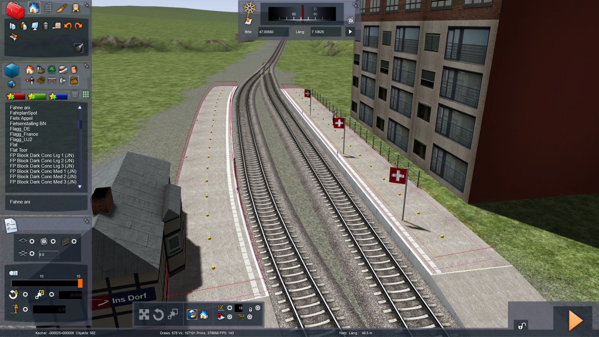 Aber das hier wunder mich: Auf dem Bild sind Gleislinks angezeigt. Aber zu manchen existiert kein Objekt oder sonst was. Es ist einfach nur ein gelber Strich. Ich weiß nicht, wie ich diese gelben Striche entfernen soll. Sie stören teilweise die Signale.