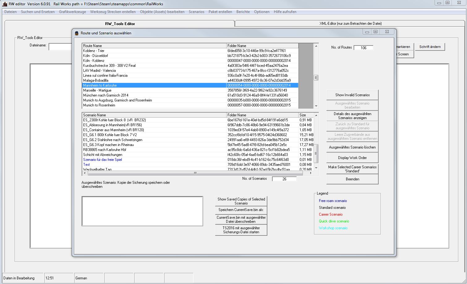 was bei Rollmaterial bisher immer funktioniert hat, aber leider ohne Erfolg, die Strecke wird im RW_Tool nicht angezeigt. Nun meine Frage, wie kann Ich Manheim-Karlsruhe in RW_Tools anzeigen lassen.