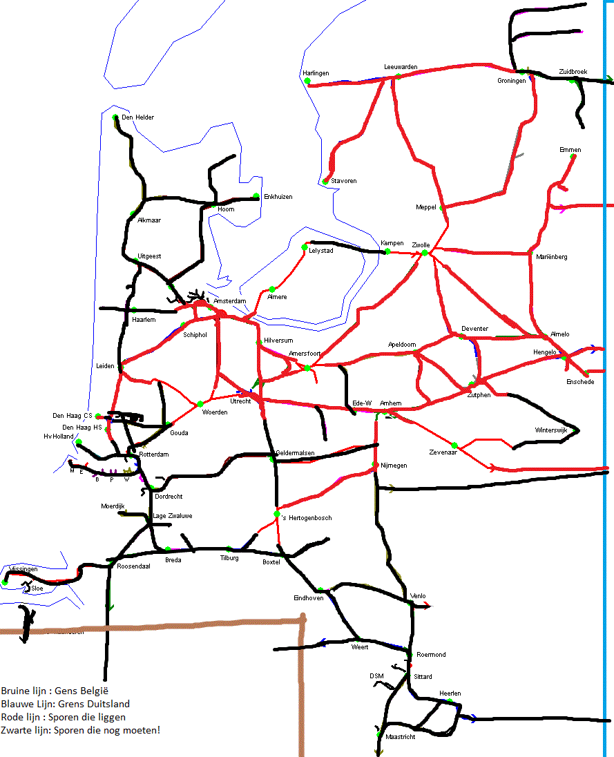 Die ns Strecke, wo die Route ganz Niederlande liegen wird. Und Grenzregionen in Deutschland.