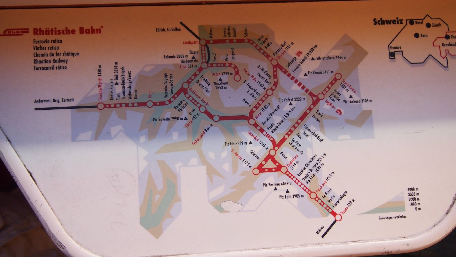Hier siehst du mal einen Plan von dem den ich letzte Woche ein Foto gemacht habe.Der Zug in dem ich drin war wurde auch von der neuen Lok gezogen aber es gab nicht mal in der 1. Klasse einen Panoramawagen.Hoffentlich wird die Strecke aber noch weiter bis nach Chur gemacht aber auch die anderen Wege nach Chur wären interessant. Was auch noch interessant wäre, mit dem Glacier Express von St.Moritz nach Zermatt, Jippie 8h fahrt.