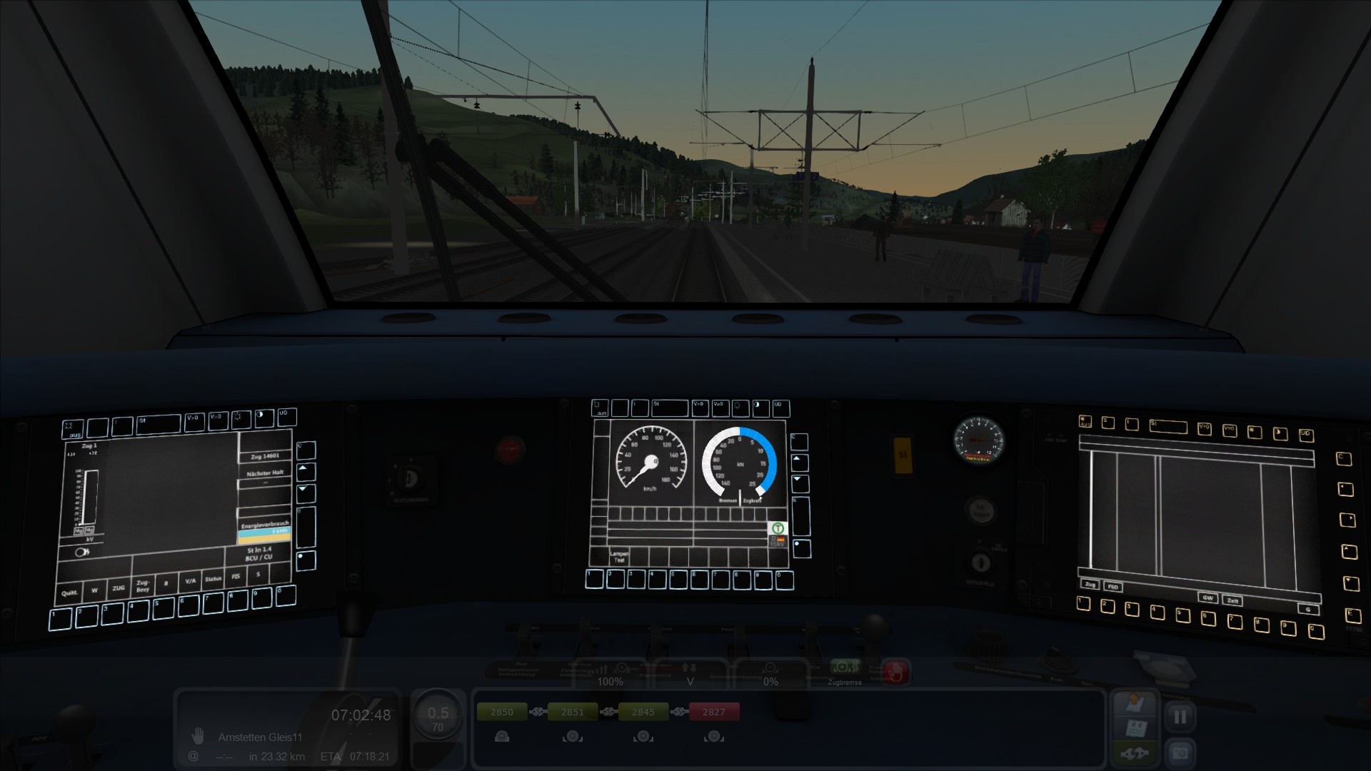 @Patti98, also, ich wiederhole nochmal was du gemacht hast. Im Führerstand bist du mit der linken Pfeiltaste auf die linke Seite des Führerstandes gewechselt, hast dort mit der Maus die Batterie eingeschaltet und anschließend mit der Maus auf den Knopf Lösen gedrückt, bis dieser aufgehört hat zu blinken und der links daneben erloschen ist. Anschließend bist du mit der rechten Pfeiltaste wieder in die Mitte des Führerstandes gewechselt, hast dort mit der Maus den Stromabnehmer gehoben und danach den Hauptschalter aktiviert.