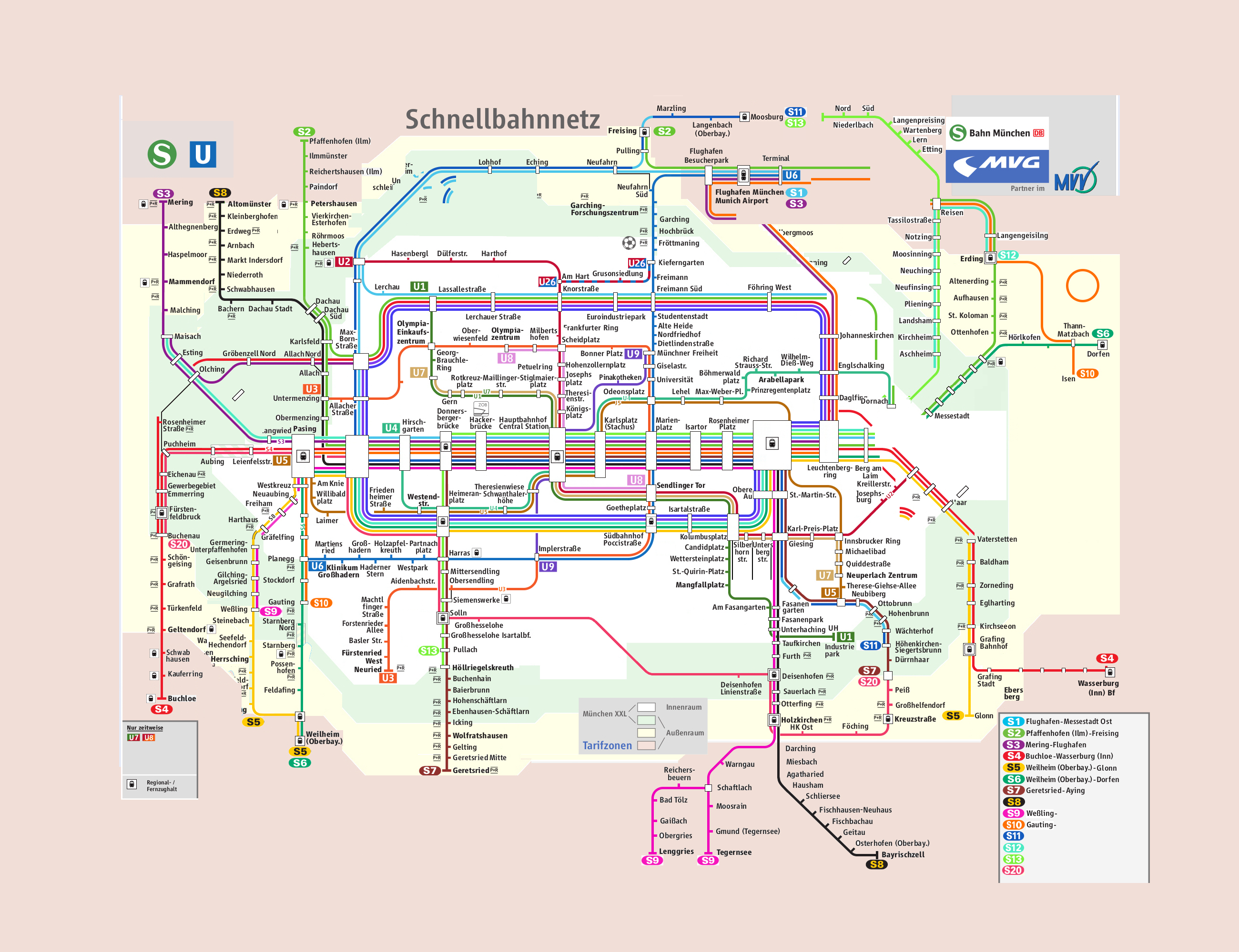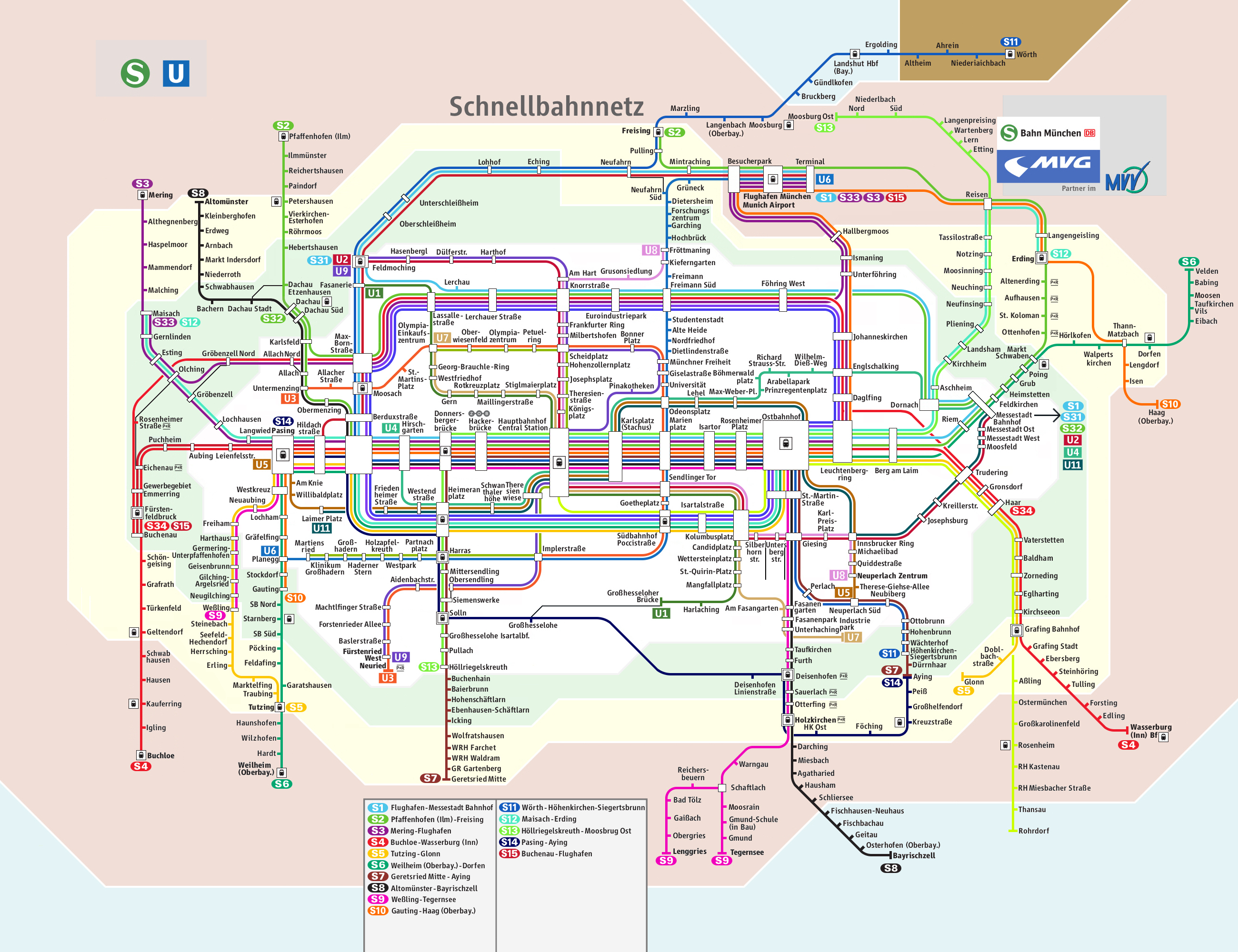 S4N: Sie hat einen eigen Linienstrich ab Gröbenzell Nord nach Buchenau und ab Daglfing nach Haar.Aktualisierung zu JEDER Linie: U-Bahn: