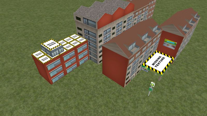 Ich versuchte unter dem Dach meiner Tankstelle (siehe unten) einen Schatten zu erstellen. Nach dem, was ich hier gelesen habe, habe ich in 3DC eine Ebene mit der .tga Datei erstellt (mit Alpha Kanal) – 24 Bit, außen dunkel, innen hell (mit so einem Graustufenverlauf); shader: BlendATexDiff.
