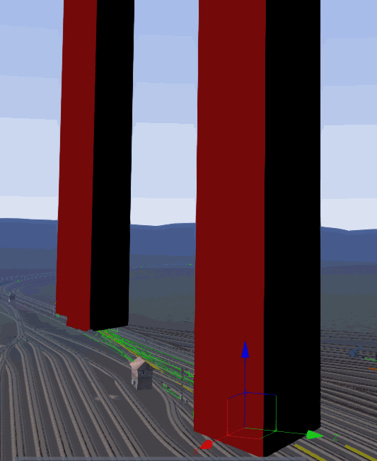 Rote Türme sind nicht per sé ein Fehler. Das kann passieren, wenn die Linkrichtung um mehr als 90° von der Signal-Z-Richtung abweicht. Auf Konstanz-Villingen gibt es diese Türme z.B. in Radolfzell, welche von den ESigs der Ablachtalbahn erzeugt werden. Auch die GPAs von vR erzeugen IMMER rote Türme, trotz korrektem Einbau, weil das GPA-Objekt um 180° verdreht ist.