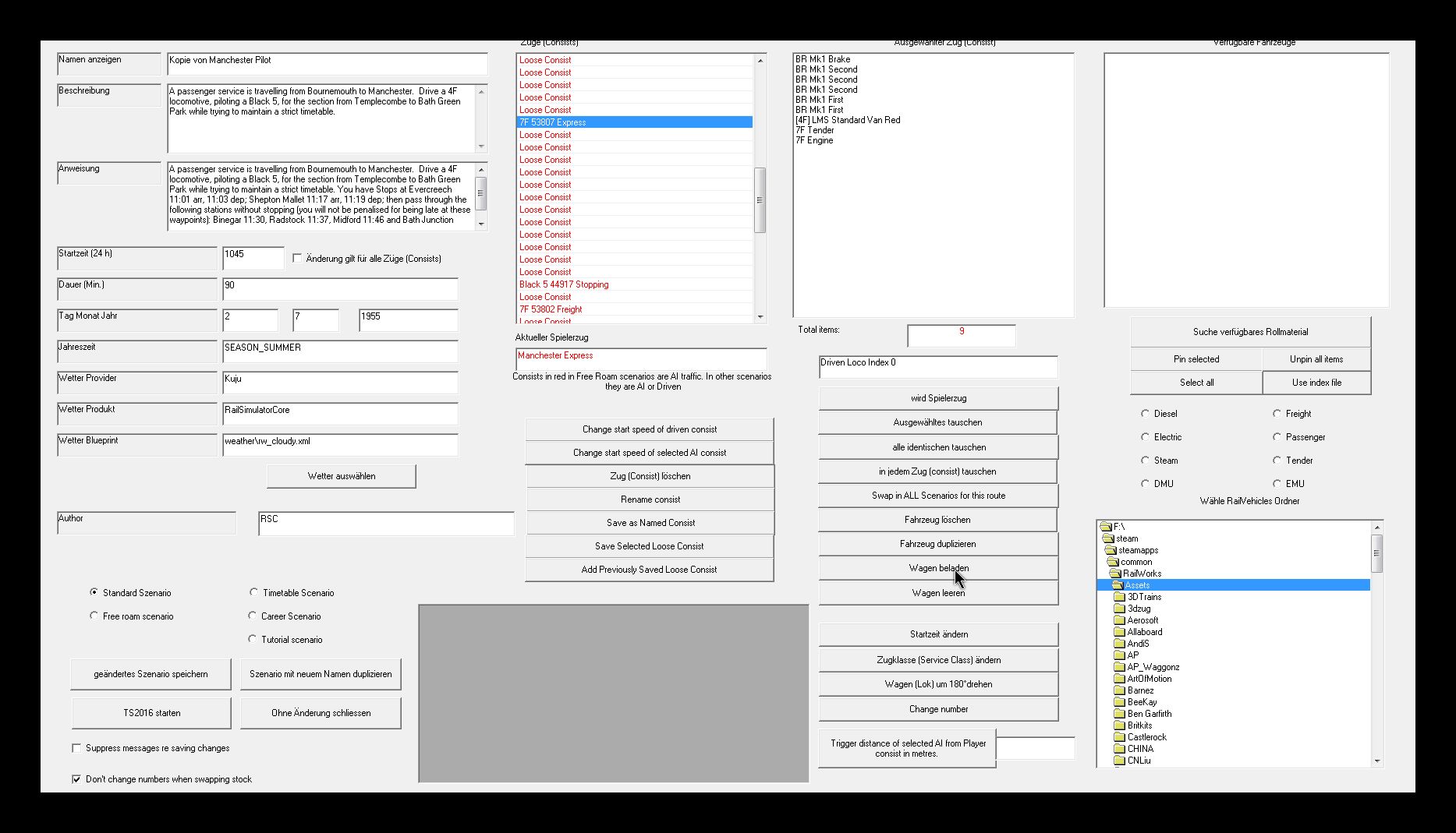 Hab im linken Feld den Zug ausgewählt und im linken Fenster die Fahrzeuge einzeln gelöscht und das ganze abgespeichert. Anschließend im TS den Cache geleert und das Szenario an der gespeicherten Stelle fortgesetzt. Die Kollisions-Meldung kommt trotzdem.