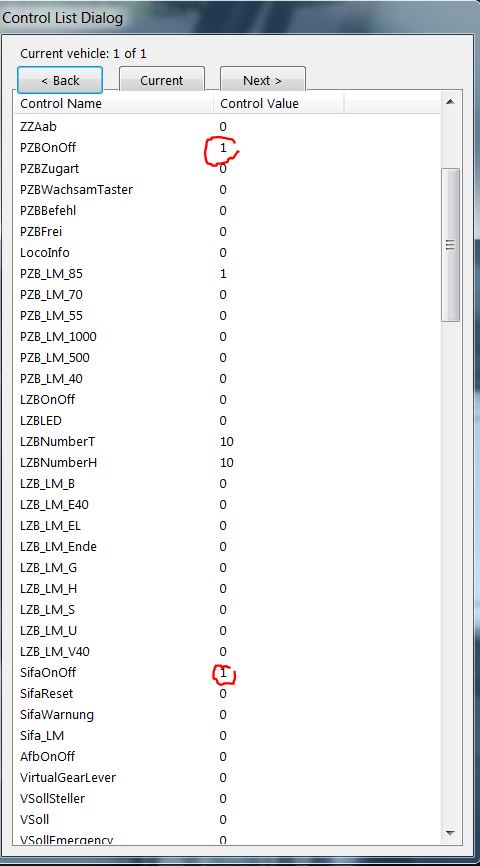 Das einzige Problem das ich noch habe, ist das die Werte der ControlValues "PZBOnOff" und "SifaOnOff" auf 1 stehen bleiben. Beide Zugsicherungssysteme scheinen dennoch zu funktionieren (Rückmeldung bzgl. SiFa und PZB Einschaltung des vR Messagesystems kommen wie gewünscht). Tiefgründige Tests ob das Einfluß auf die Funktion beider Systeme hat habe ich nicht getätigt. Alle versuche die Werte beider Stats (SiFa-/PZBOnOff) auf "0" zu setzen, blieben bislang erfolglos. Egal ob aneinander gefügt oder mit irgendwelchen "Zeitüberbrückern" zwischen den "1" und "0" Befehlen.