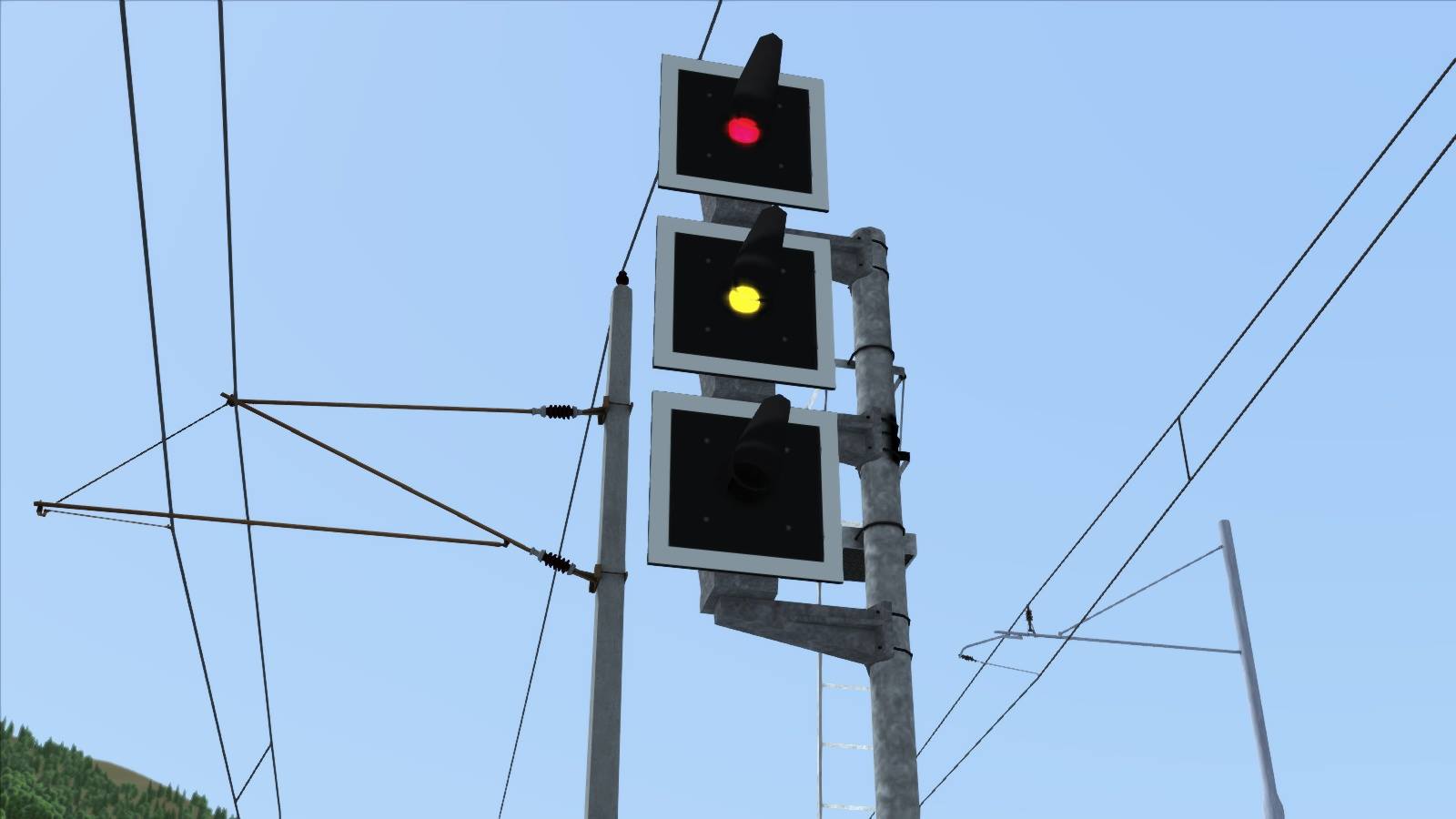 Italienische Signale in Verbindung mit österreichischen Oberleitungsmasten.