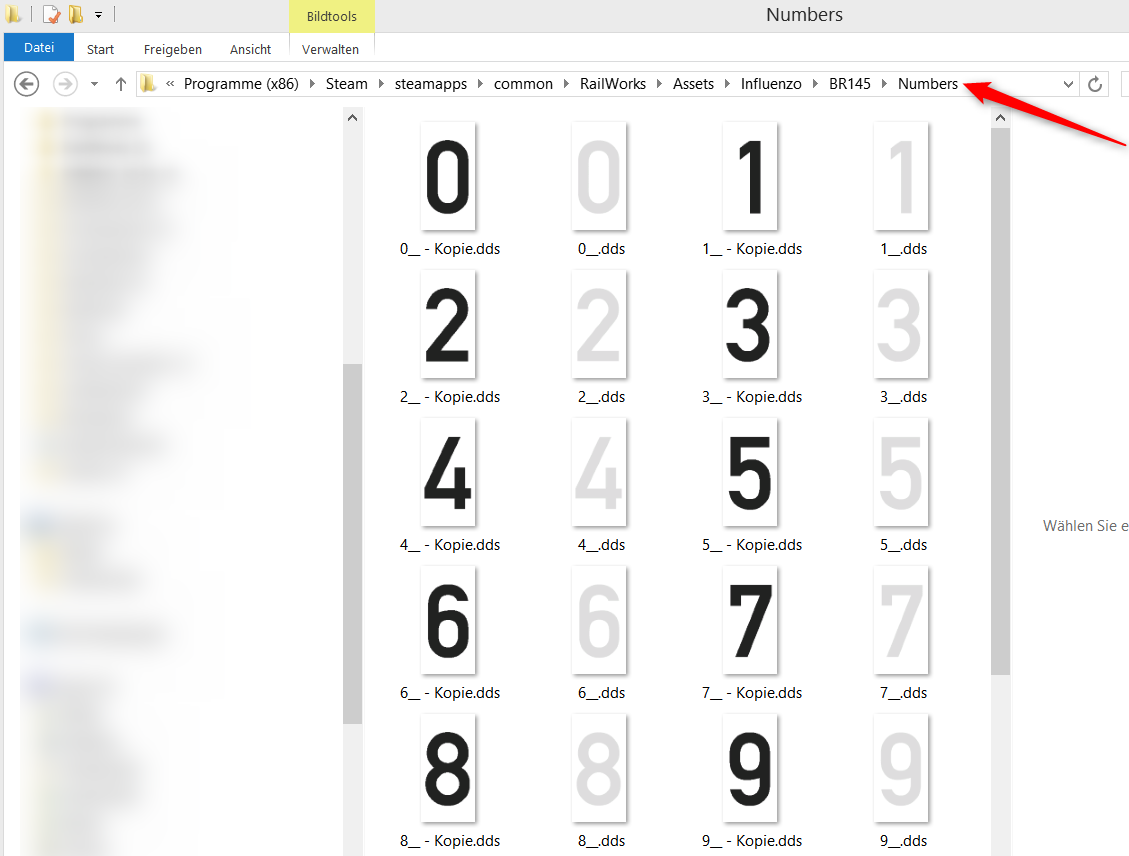 Schau dir mal den Ordner an: RailWorks\Assets\Influenzo\BR145\Numbers