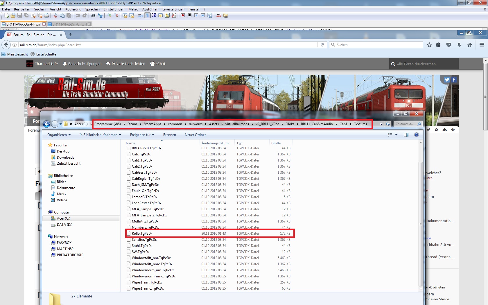 Nun habe den Ordner Kopiert und in Cab1 umbeannt sowie alle Einträge in der Bin. von Cab in Cab1 geändert. Das Rollo mit neuer Textur ist aber nur innen