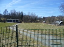 Auch der Bahndamm ist noch gut auszumachen, bevor sich das Sommerunkraut breit macht und jegliche Spuren überdeckt und die Weidezäune ein betreten zu verhindern wissen ;) Nach links führt die Strecke talwärts Richtung Jöhstadter Bf und rechts gehts in die langgezogene Steigung durch die Weiden. Von dort aus hat man einen guten Ausblick ins Tal und die dort verlaufende Strecke mit der Schwarzwasserbrücke vom letzten Mal ;)