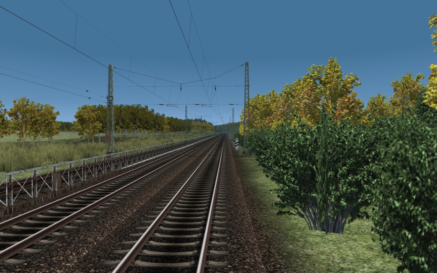 Also bei dir fehlt da einiges, das Gras, die Oberleitung ist unvollständig, die Tafeln fehlen und da steht definitiv kein Baum.