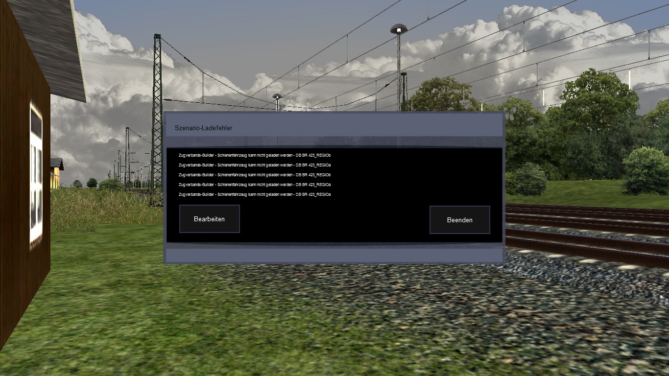 Man kann doch mit ==> Strg + Q ==> Beenden ==> Nein ==> das Szenario starten - allerdings fehlen dann halt die Zugverbände aus der Fehlermeldung.