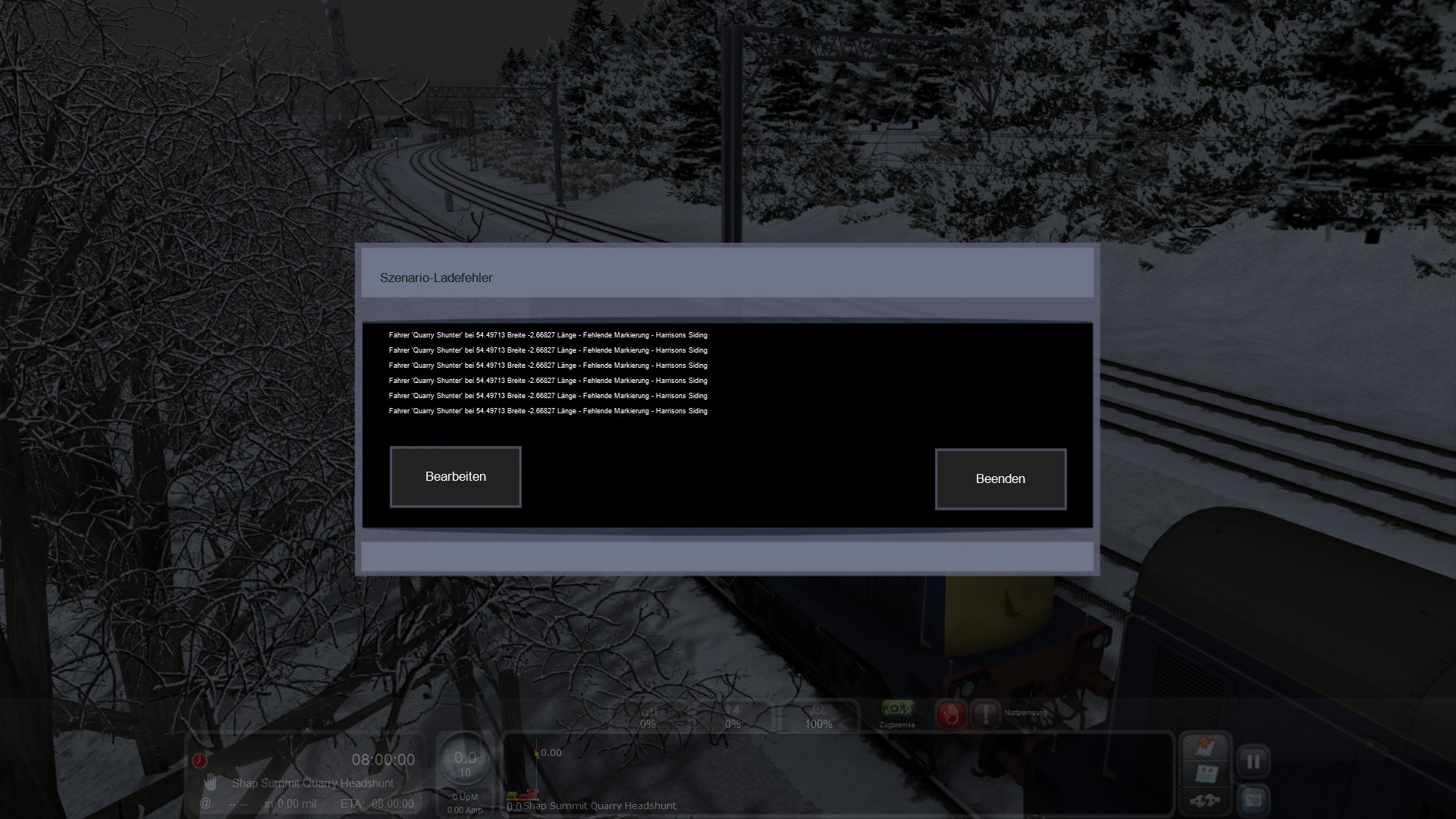 ich hänge grade an einem mir echt unerklärlichen Problem: Ich habe in mienem Szenario einen Szenario-Maker ("Markierung - Bestimmungsort") gesetzt und in den Fahrplan des Spielerzuges eingebunden. Soweit kein großes Ding. Der Fahrplan meldet keinerlei Probleme. Wenn ich das Szenario aber starte wird vermeldet: "Fehldende Markierung". Ich bin da im Moment etwas überfragt, Bilder sind unten angehängt. Vlt. hat jmd. von euch eine Idee, was ich übersehen habe.