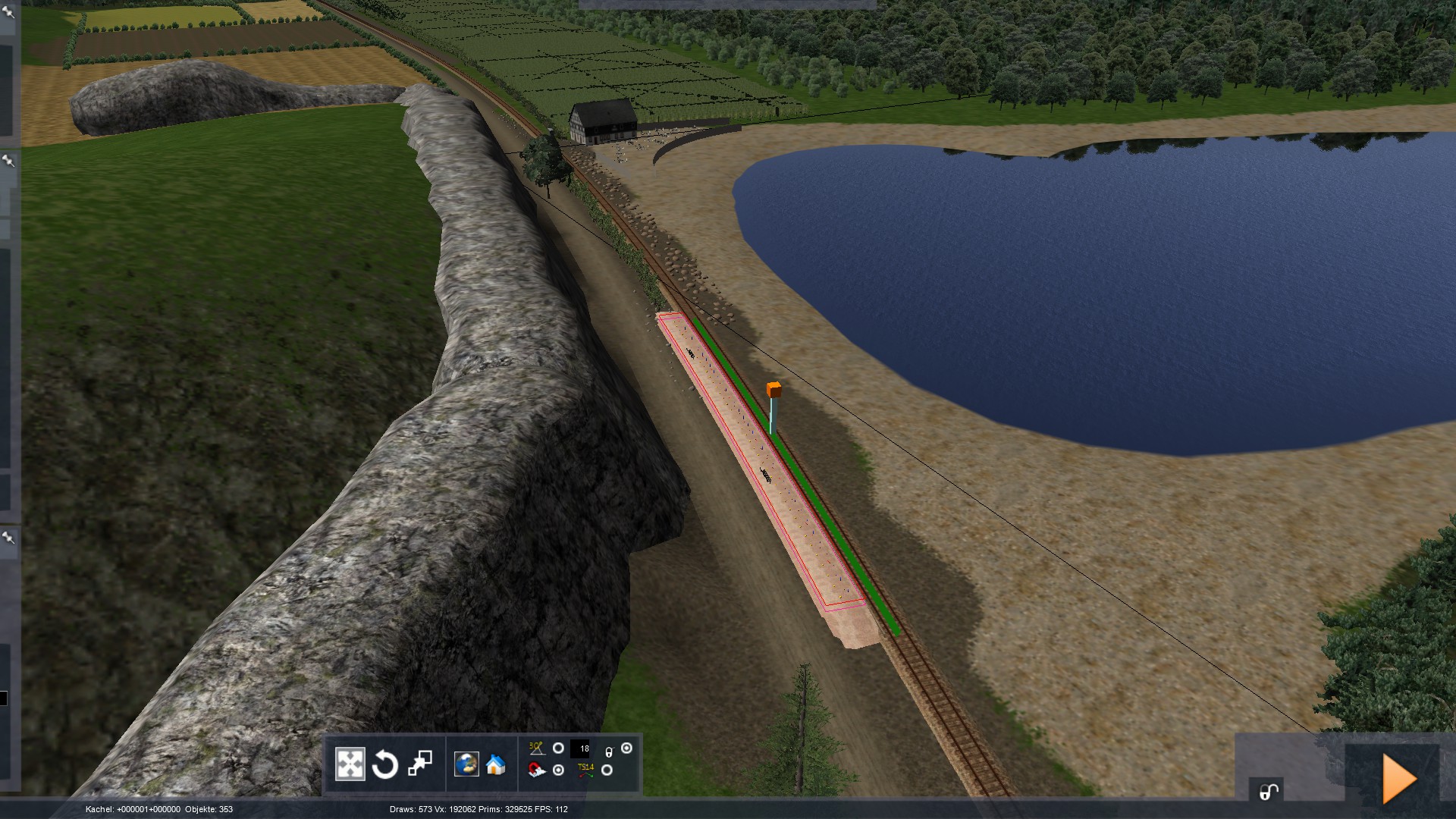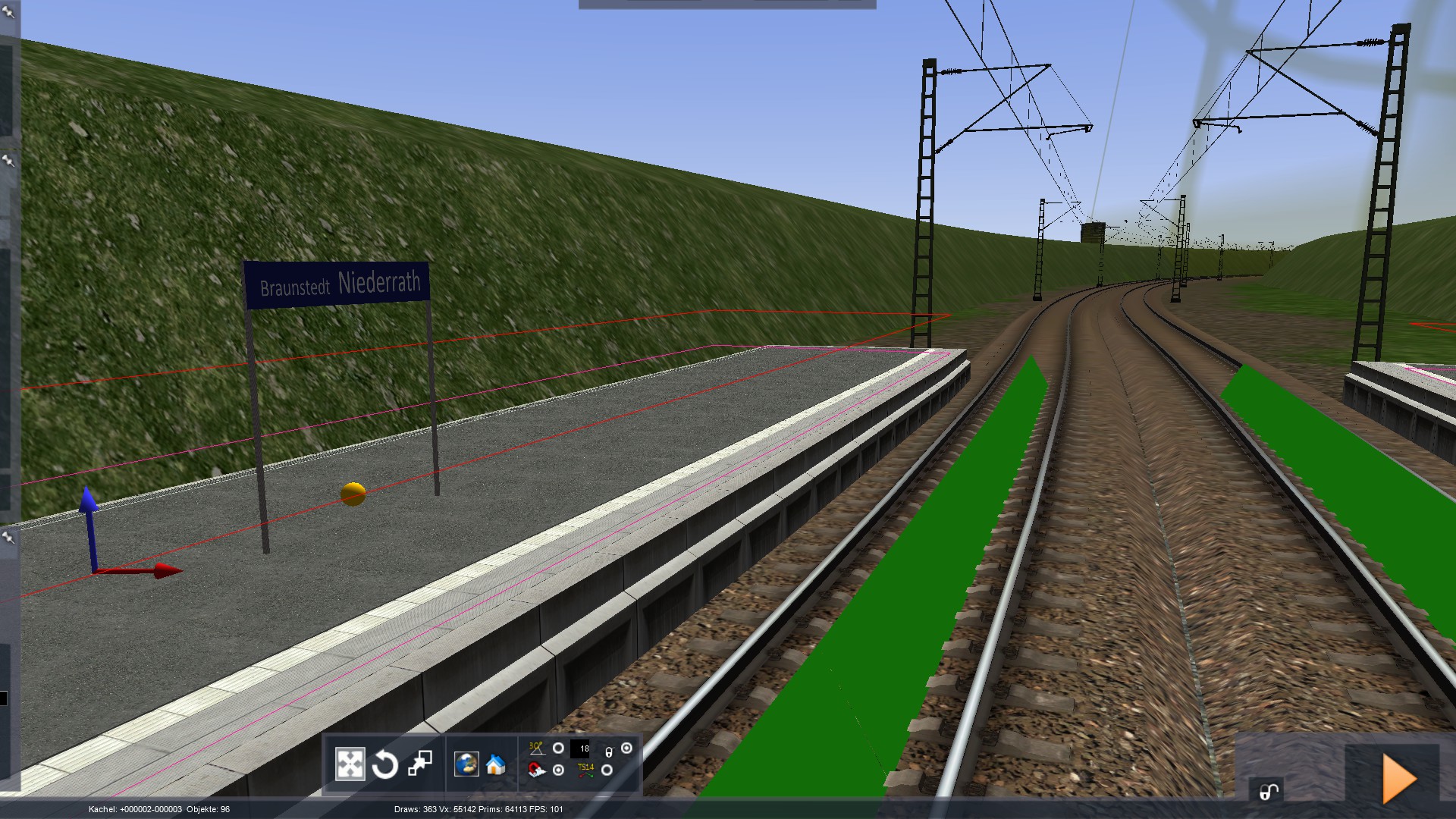 Hallo! Vor ein paar Tagen habe ich angefangen, eine neue Strecke zu bauen. Sie besteht (bis jetzt) aus einer kurzen Nebenbahn, einem großen Bahnhof und einer ein paar Kilometer langen Hauptbahn. Die bis jetzt auf der Strecke angesiedelten Bahnhöfe sind auf der Nebenbahn: Leustadt, Klachau, Hp Klachau-See, Braunstedt-Oberehrenberg und Braunstedt-Ehrenberg, wo sich die Nebenbahn in eine Hauptstrecke (ca. 2km) einfädelt. Der große Hauptbahnhof heisst Braunstedt HBF (wer hätt's gedacht). Von Braunstedt aus geht es dann weiter über Braunstedt-Niederrath zum jetzigen Streckenende (werden wohl auch so ca. 5km sein). Bis jetzt verbaute Assets sind: