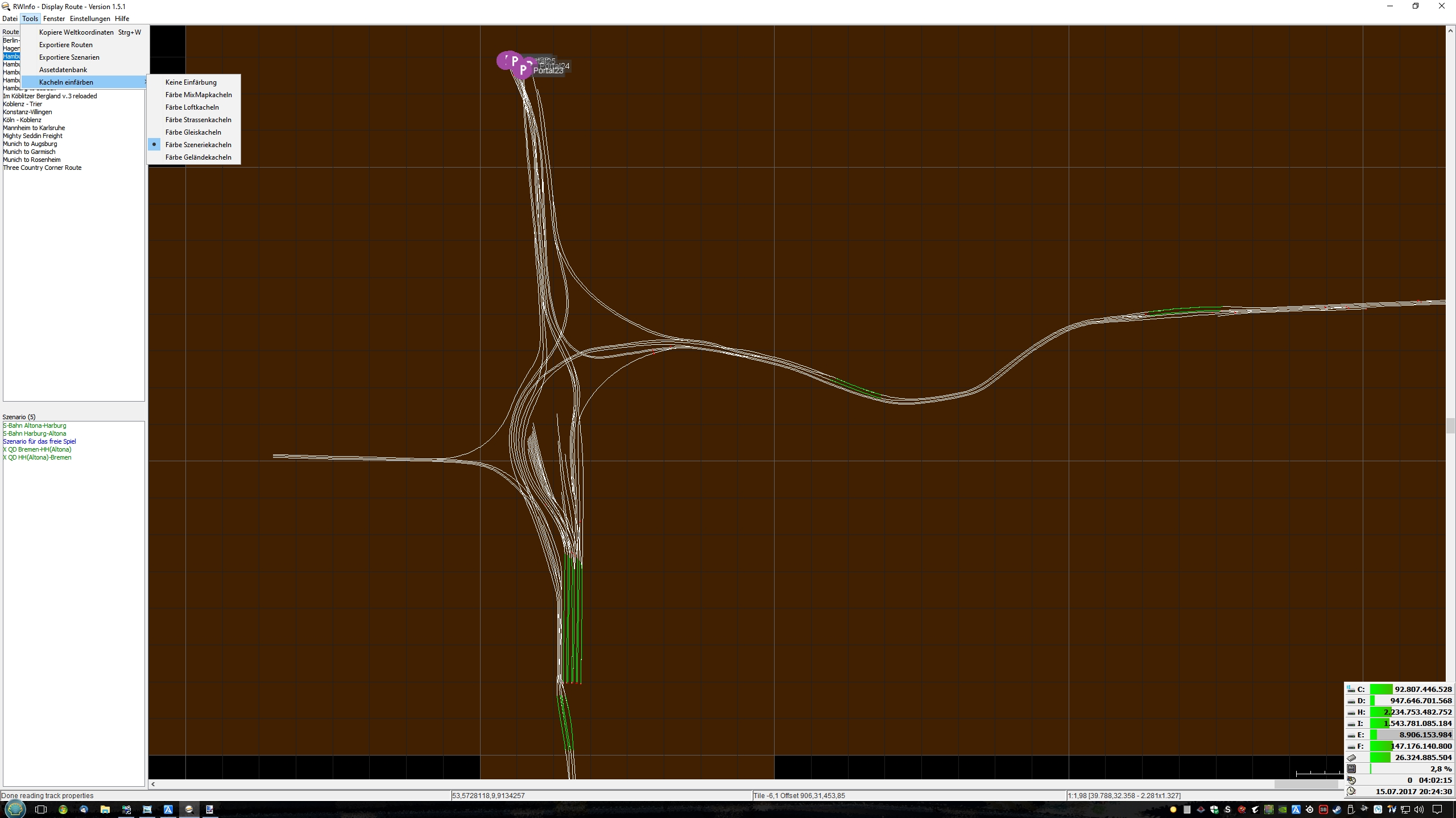 Die Bilder zeigen nochmal an der Route Hamburg-Bremen den vorher zustand, wo noch alle Kacheln, auch von den anderen 3 Ästen,trotzdem mit dabei waren.