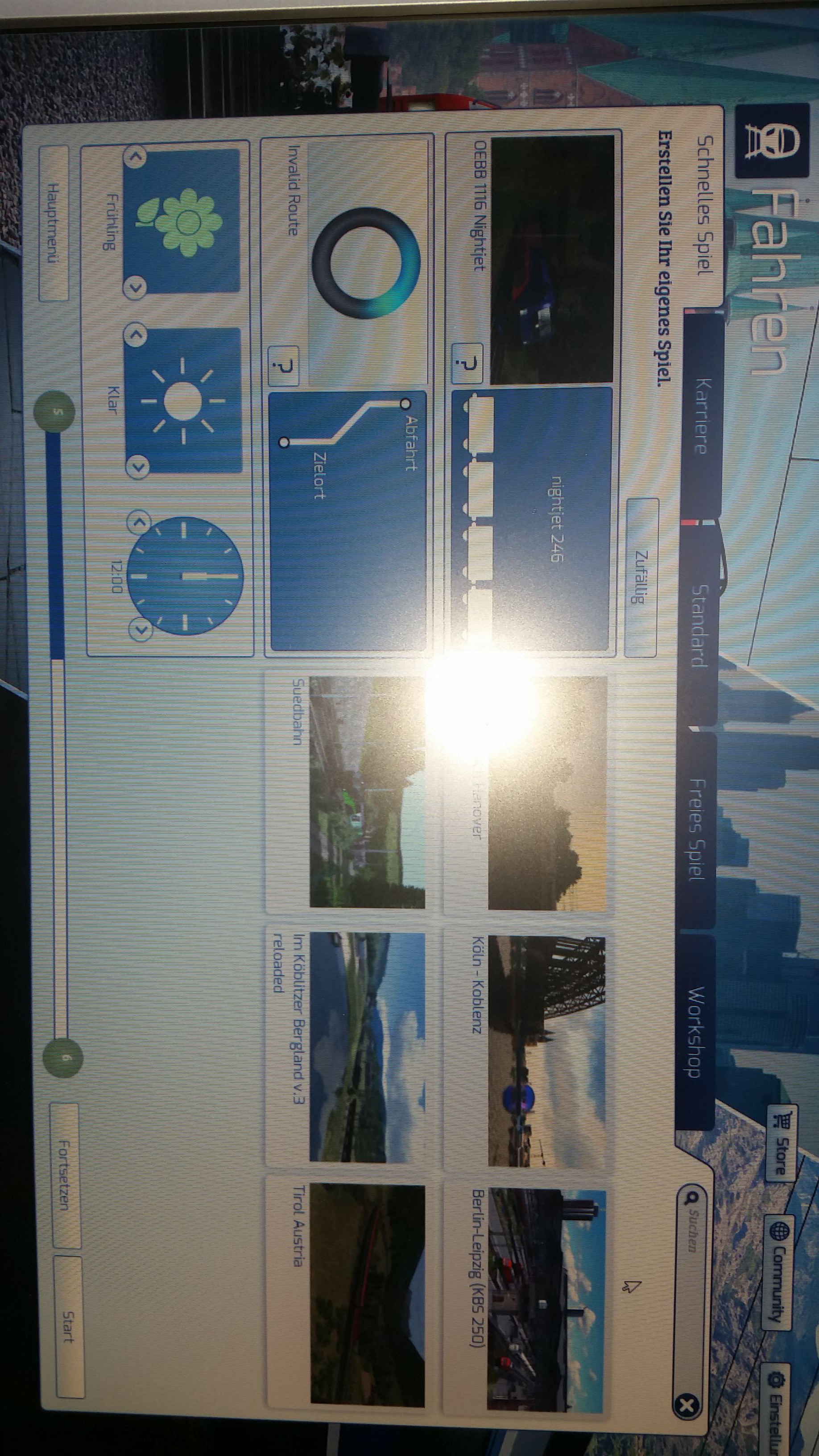 PS : Mir fällt gerade auf : es wird "Invalide Route" angezeigt. Das kommt normalerweise wenn man eine Strecke mit der man vorher mal gefahren hat, gelöscht hat, oder an Steam zurückgegeben hat....