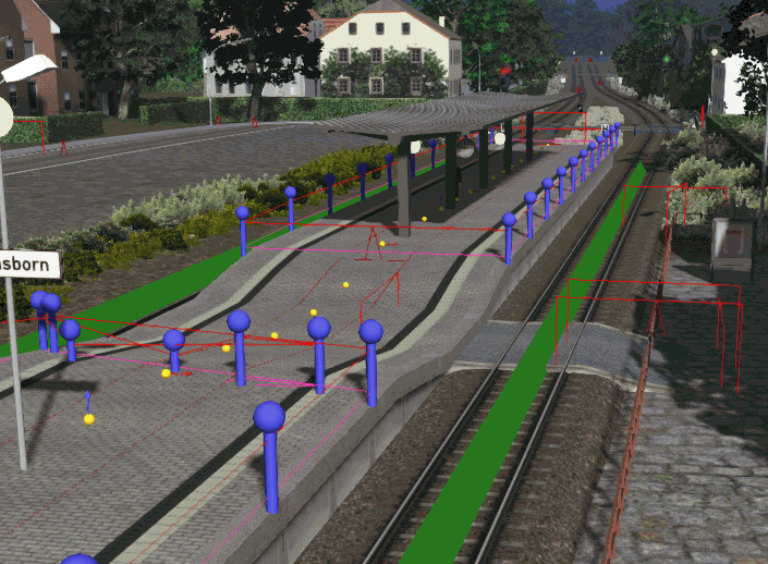 Dann bitte fast überall die Bahnsteige vom Gleis wegrücken, hier was zum Abstand prüfen: http://rail-sim.de/forum/wsif/…/1185-Lichtraumprofil-V1/