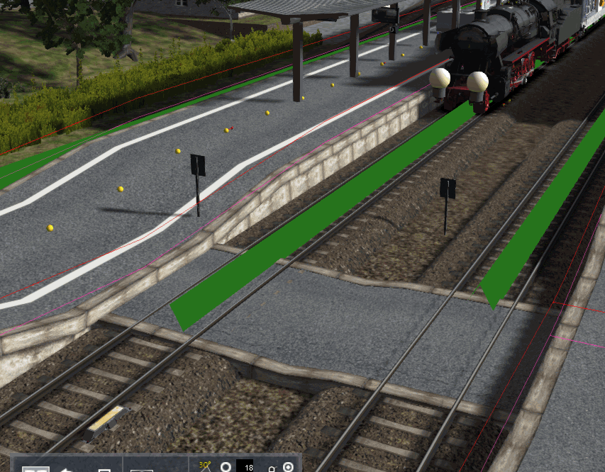 Dann bitte fast überall die Bahnsteige vom Gleis wegrücken, hier was zum Abstand prüfen: http://rail-sim.de/forum/wsif/…/1185-Lichtraumprofil-V1/