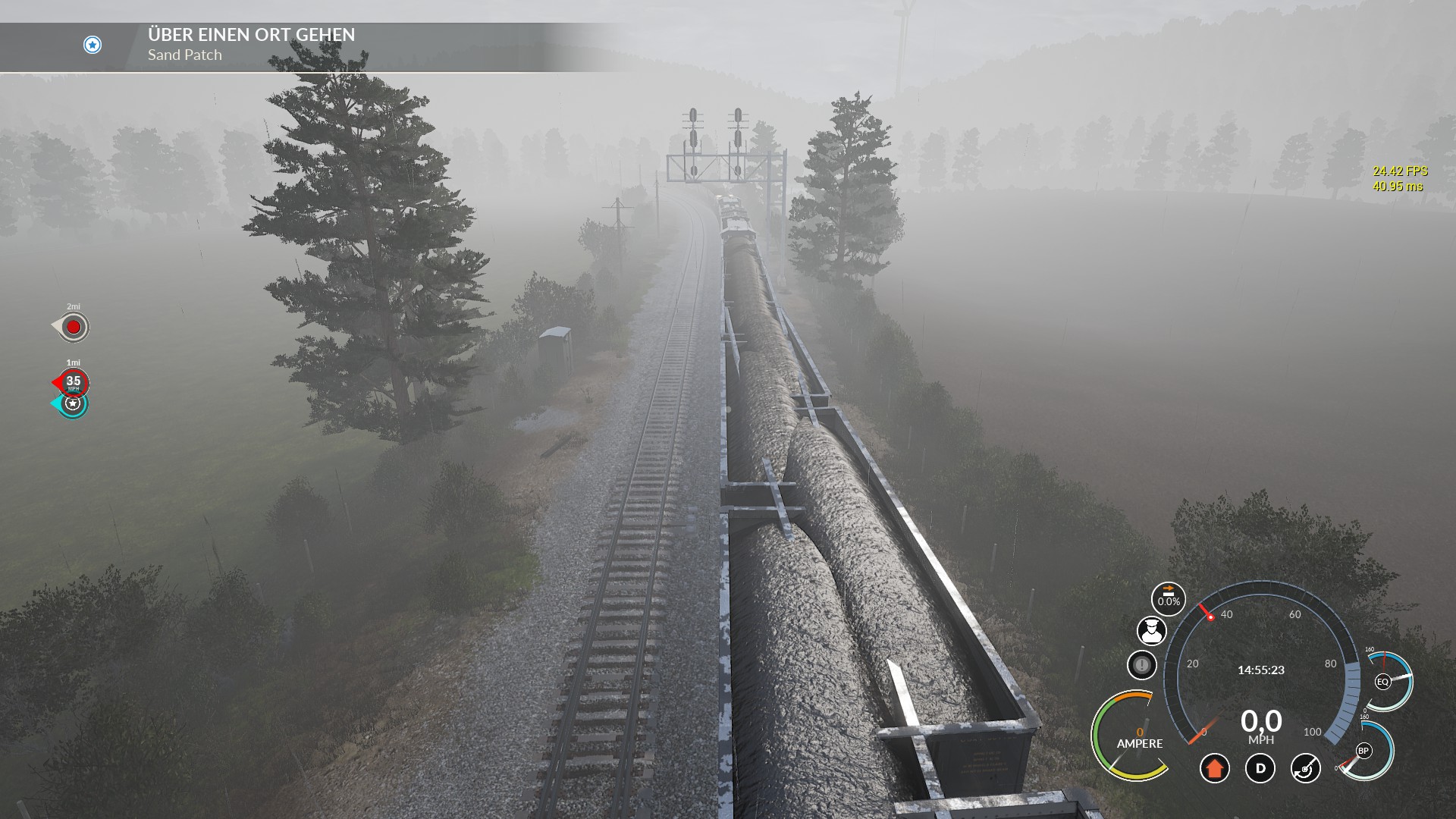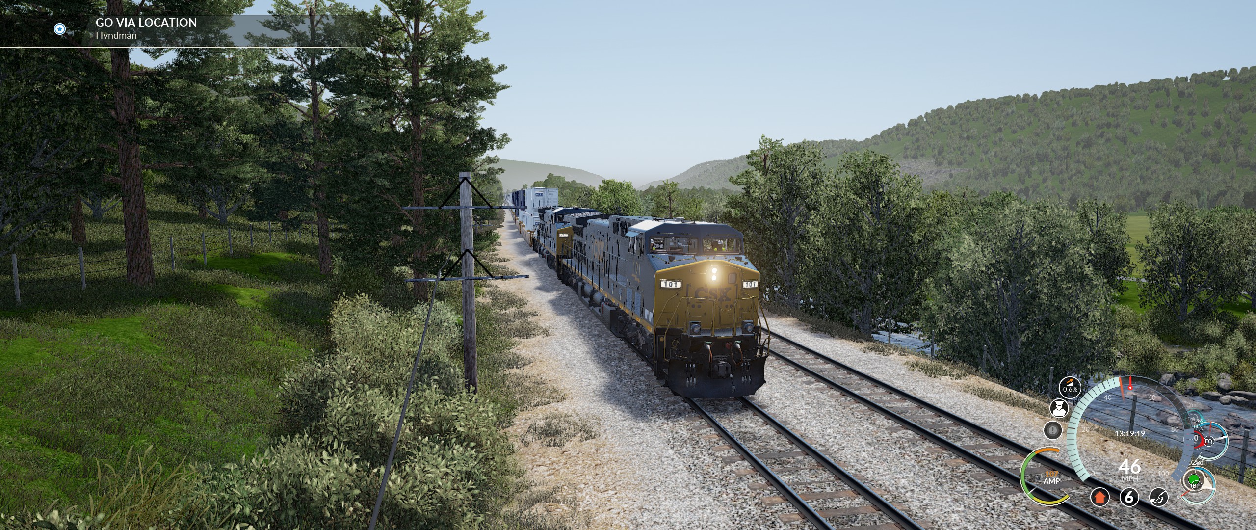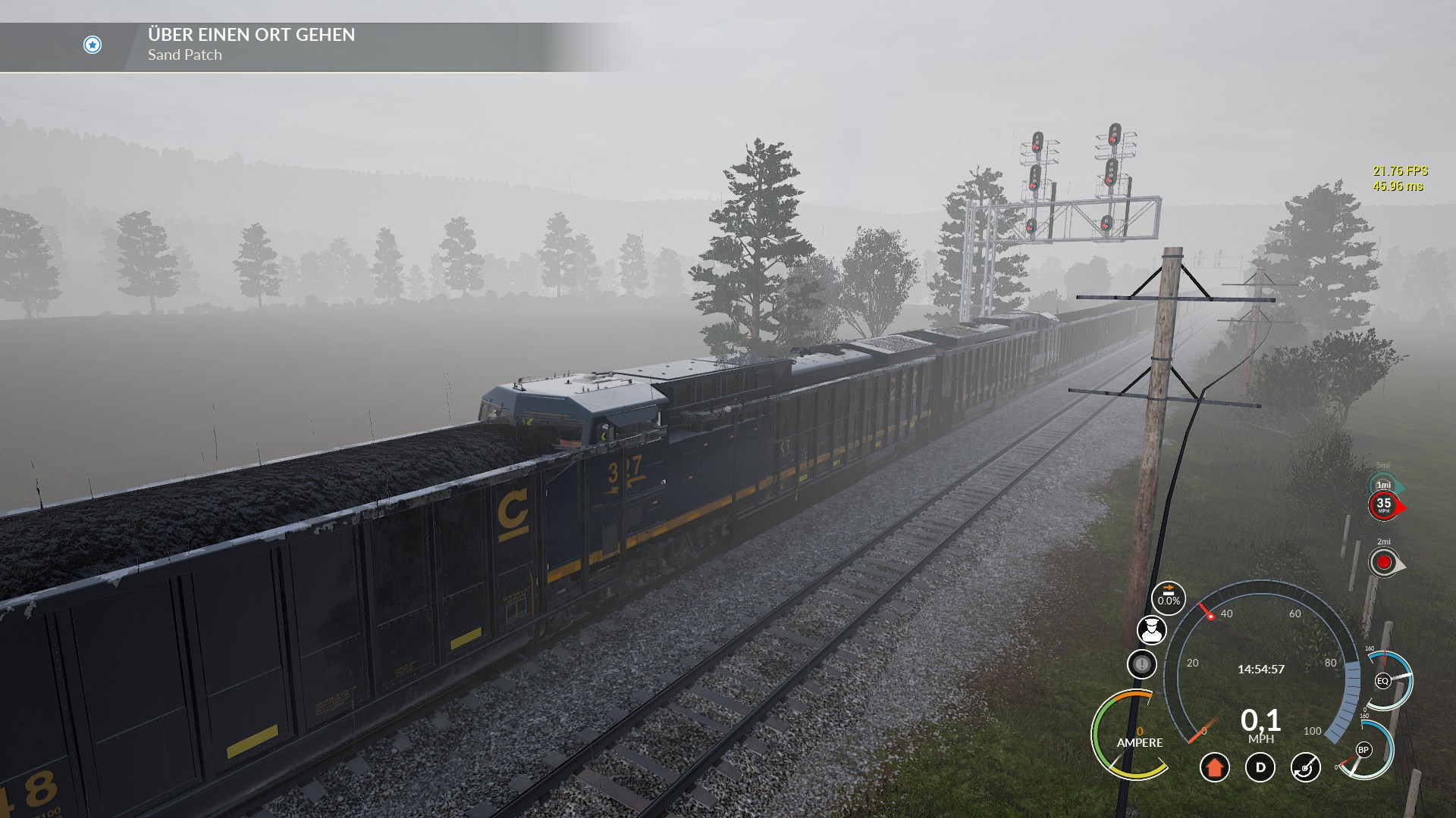 Was auch nicht zu funktionieren zu scheint ist die Hump Control in Verbindung mit der Speed Control, wenn ich die Hump Control auf 50% stelle und die Speed Control auf 2mph und den Leistungshebel auf Notch 8, dann schafft es die lok nicht die Wagons den Berg raufzuschieben weil sie anscheindend nicht über Notch 1 hinausgeht, nur wenn man ohne Speed & Hump Control auf Notch 2 stellt dann schafft es die Lok, dann wird der Zug aber zu schnell sobald die ersten Wagons über den Berg sind.