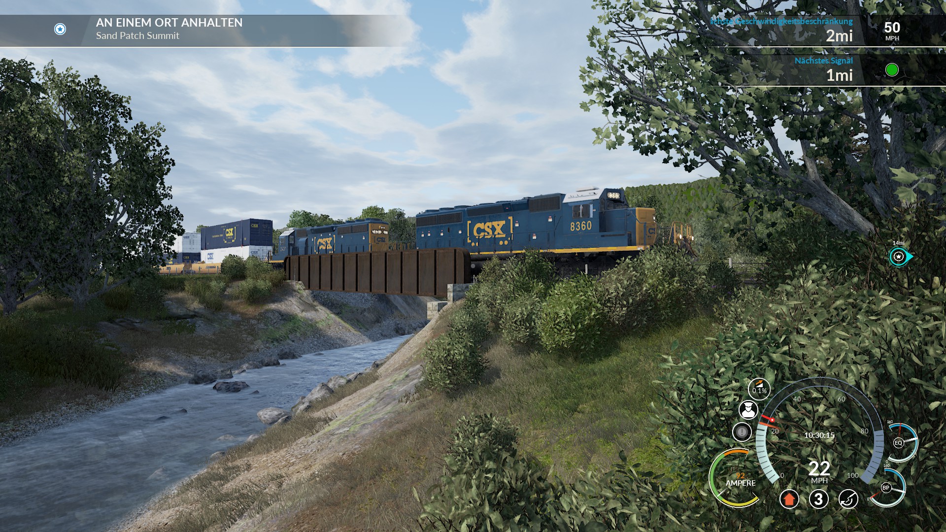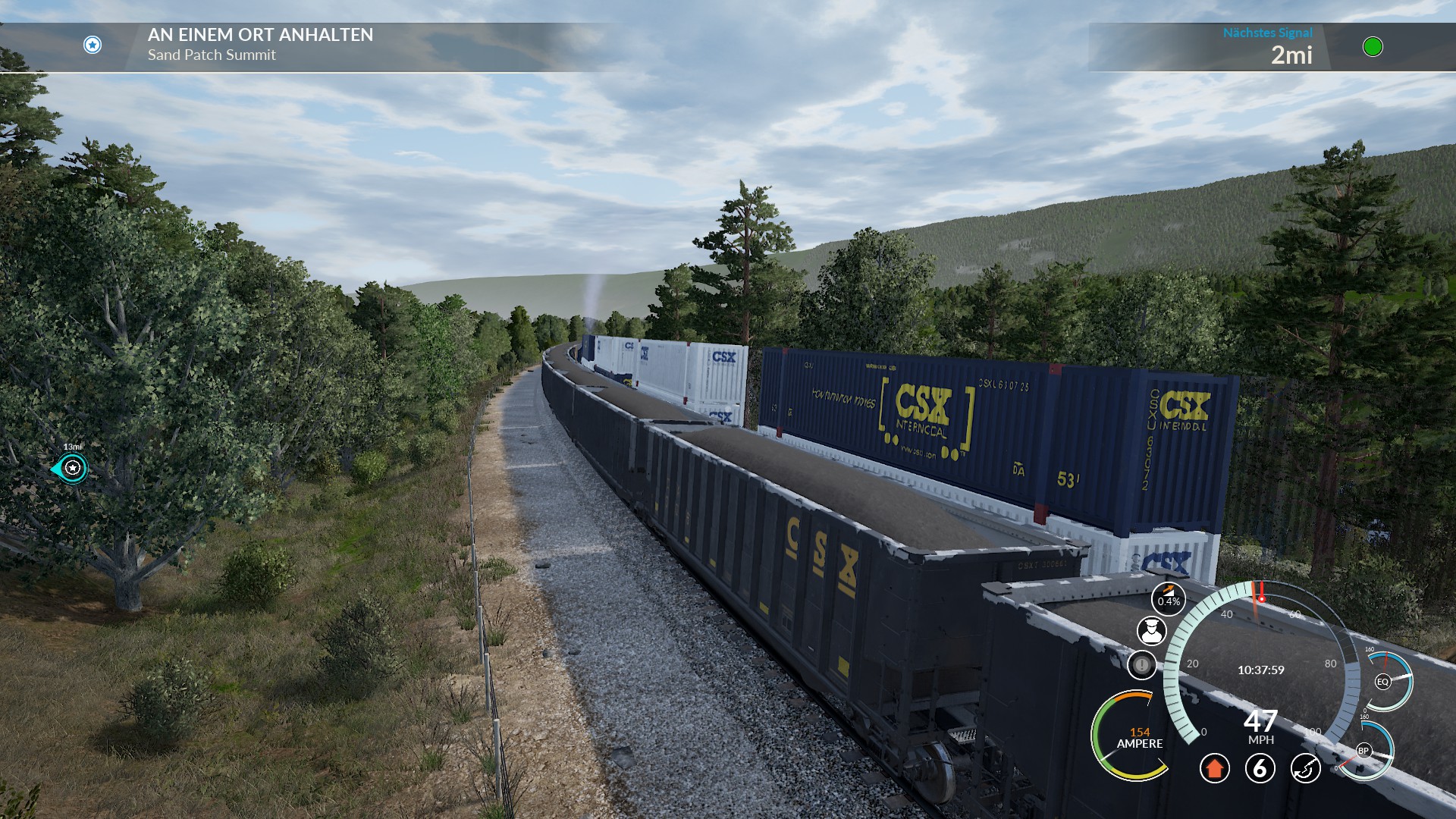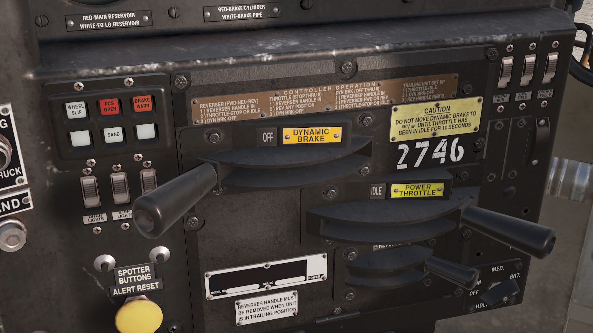 Was auch nicht zu funktionieren zu scheint ist die Hump Control in Verbindung mit der Speed Control, wenn ich die Hump Control auf 50% stelle und die Speed Control auf 2mph und den Leistungshebel auf Notch 8, dann schafft es die lok nicht die Wagons den Berg raufzuschieben weil sie anscheindend nicht über Notch 1 hinausgeht, nur wenn man ohne Speed & Hump Control auf Notch 2 stellt dann schafft es die Lok, dann wird der Zug aber zu schnell sobald die ersten Wagons über den Berg sind.