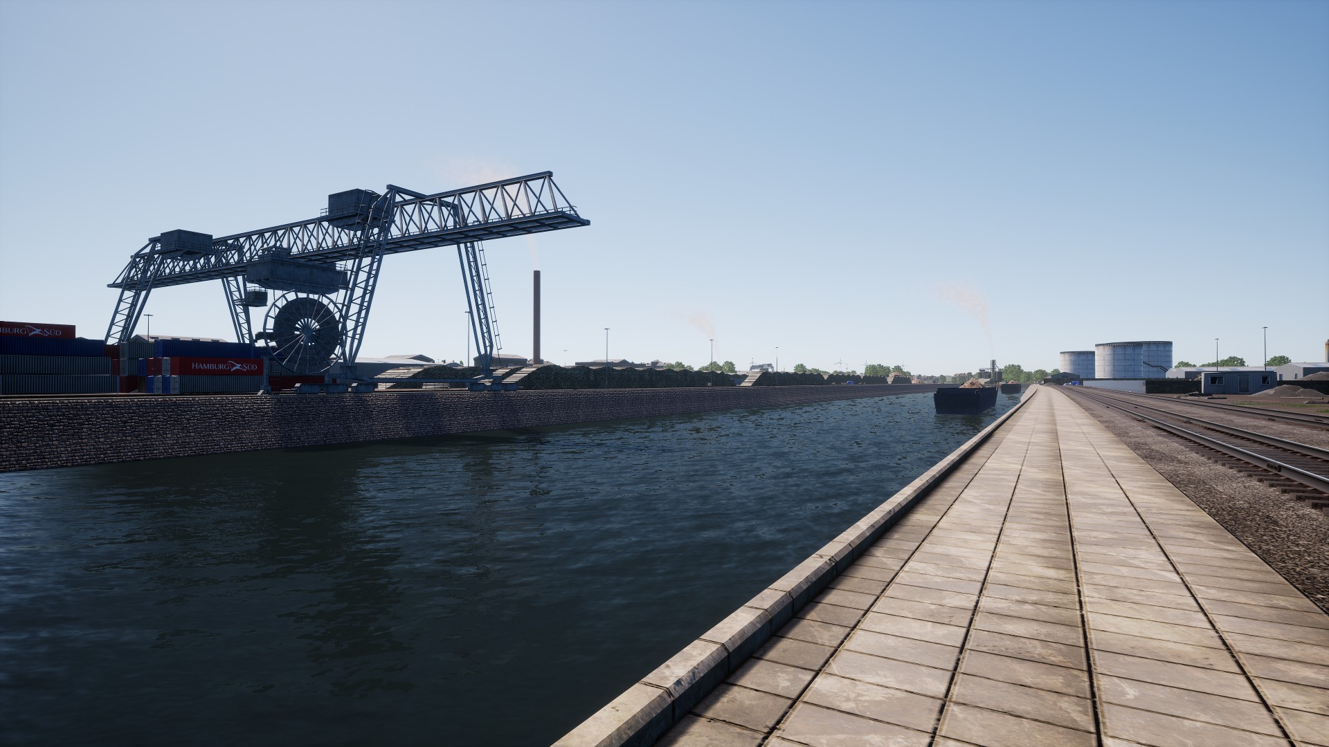 Hab mal etwas den Hafen erkundet und das sieht echt toll aus. Schade dass man da nicht mit einem Zug hinkommt. Verstehe nicht warum DTG da nicht gleich eine Diesellok nachschiebt um da etwas rumfahren zu koennen. Die BR182 kommt da ja auch nicht hin