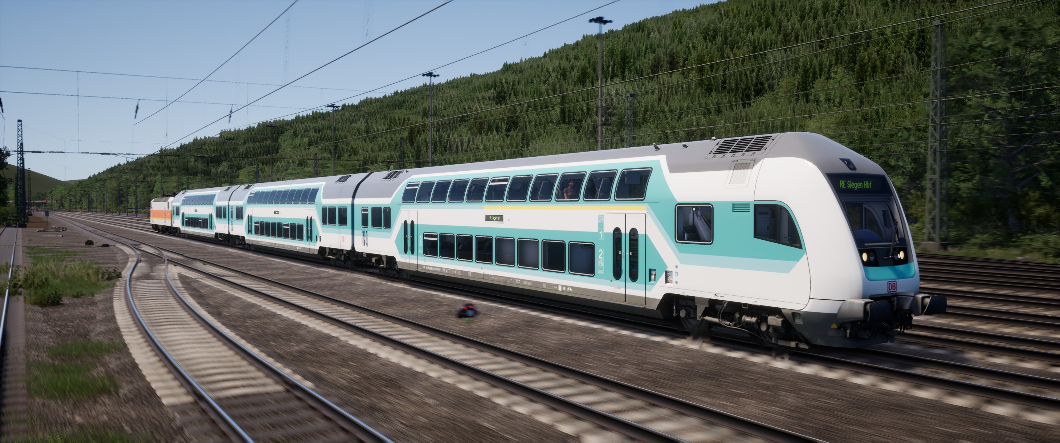 BaldJETZT im Downloadbereich und für Ruhr-Sieg-Nord, bestehend aus drei Repaints: BR143 Epoche V, Doppelstockwagen Mint, und die Zugzielanzeige für die BR143.