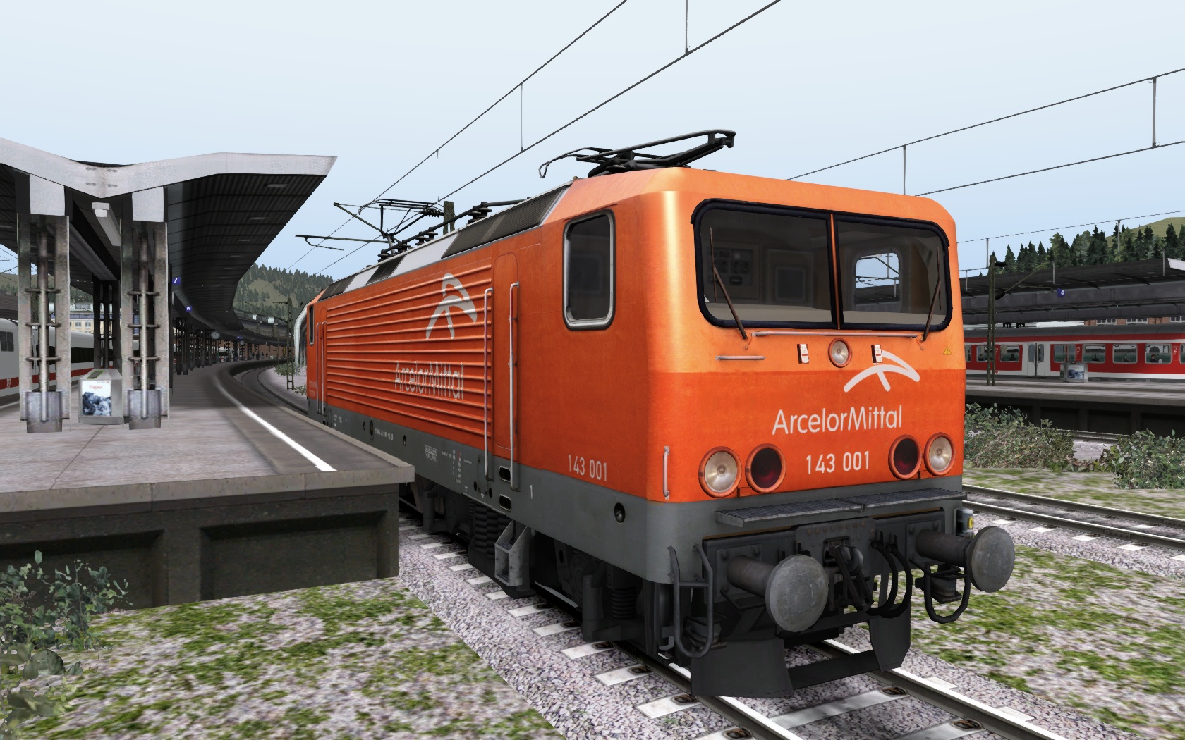 The 143 001 in orange "Arcelor Mittal" painting.