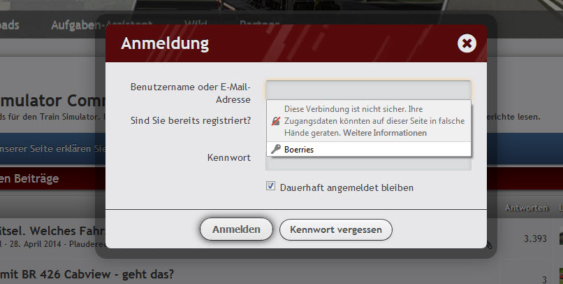 Nur weil der Firefox in seiner neusten Version jetzt diese Meldung ausgibt muß man nicht in Panik ausbrechen. Wir sind hier in einem Eisenbahnforum und nicht bei ebay, amazon oder der Spasskasse.