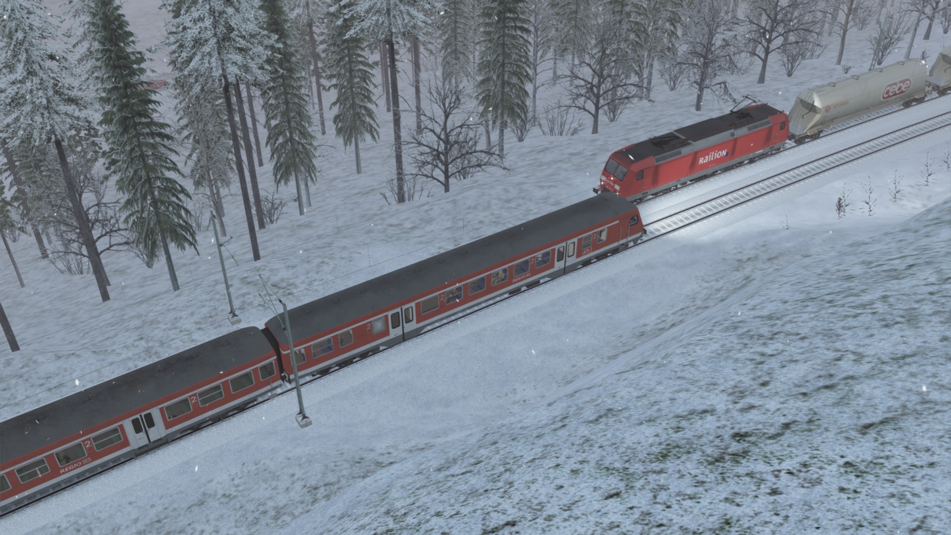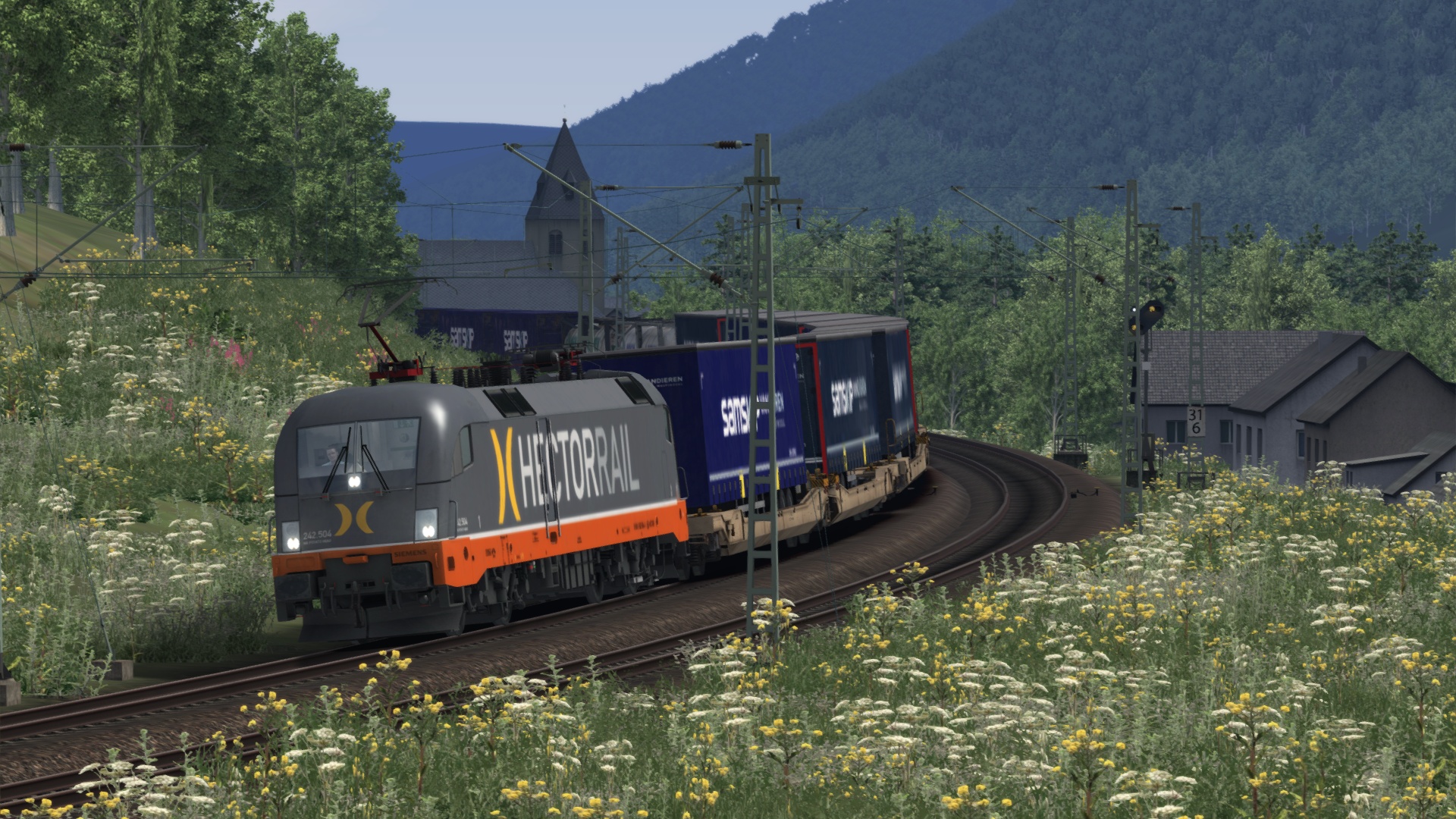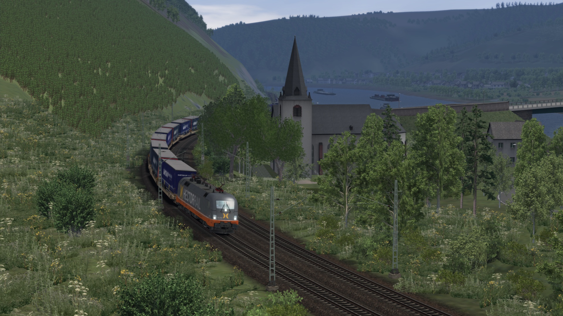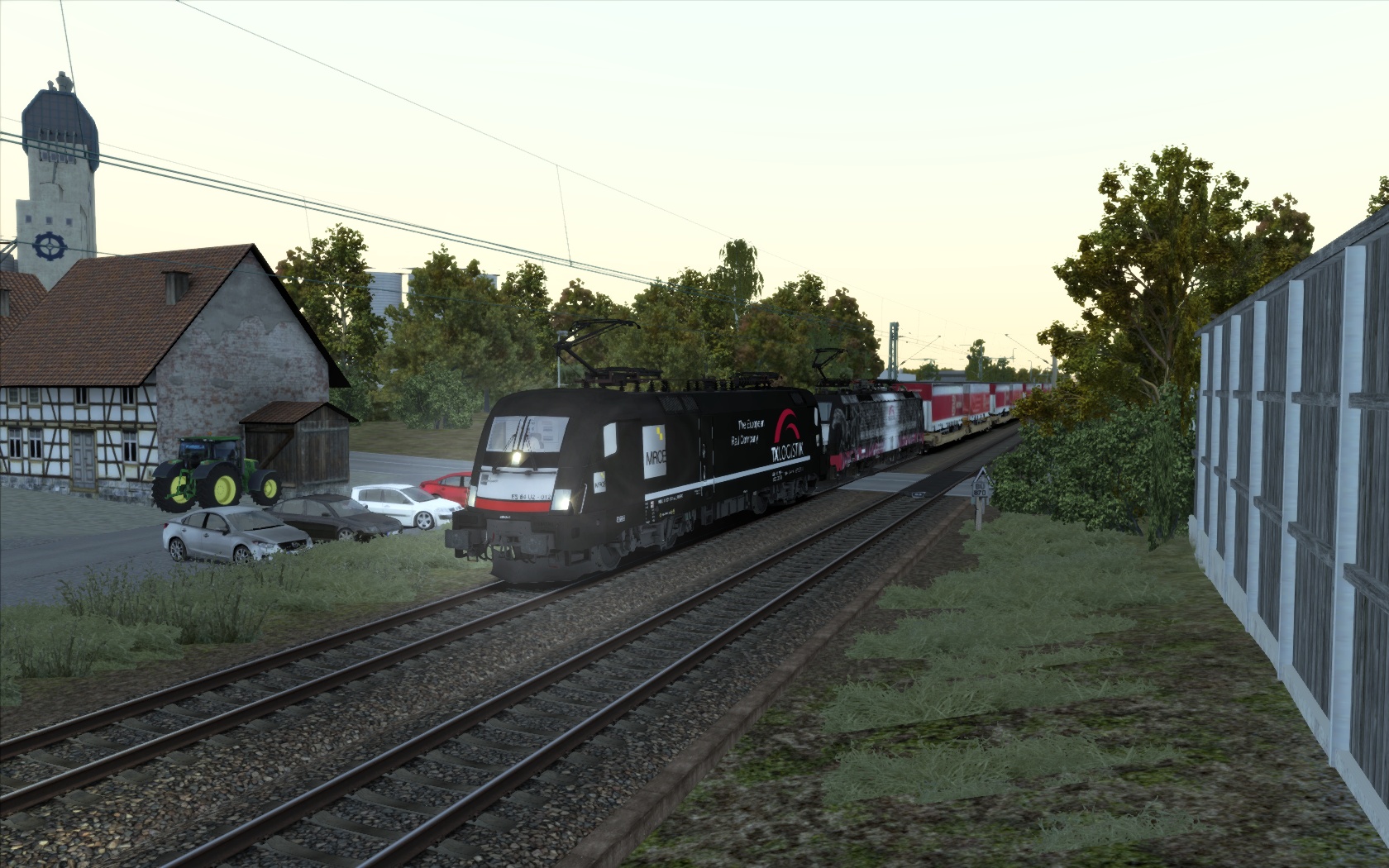Unterwegs auf meiner Strecken-Neuerwerbung mit einem Arcese-KLV, gezogen von einer 182 und einer 189. Das Szenario "Im Abendrot nach Singen" von @curt2244 kann ich nur weiterempfehlen, allein schon wegen der Doppeltraktion mit 2 verschiedenen Baureihen. Das kann man sich als Fan der EuroSprinter nicht entgehen lassen. Vielen Dank für das schöne Szenario!