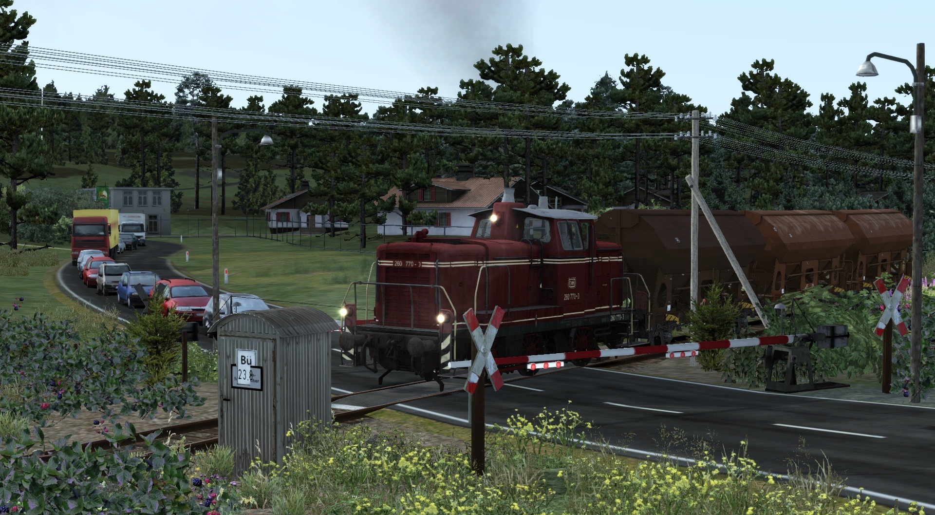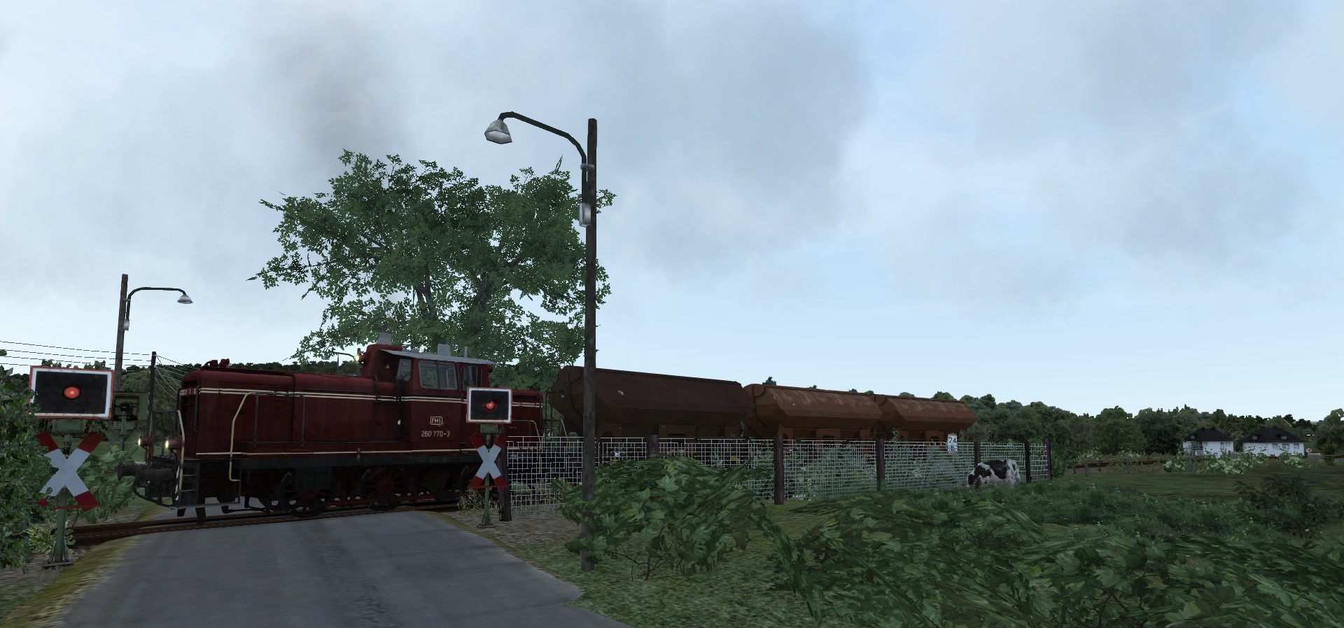 Hier bringt eine V60, drei Tds Güterwagen nach Hosvenn.