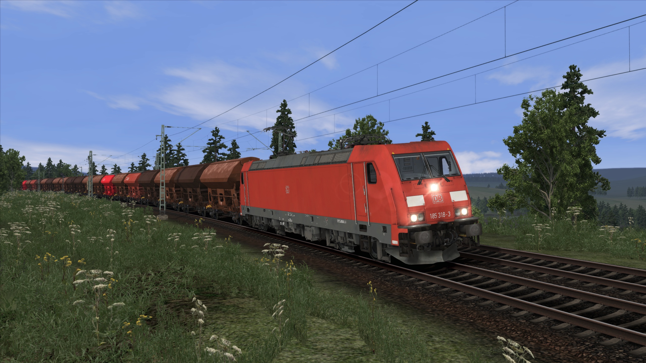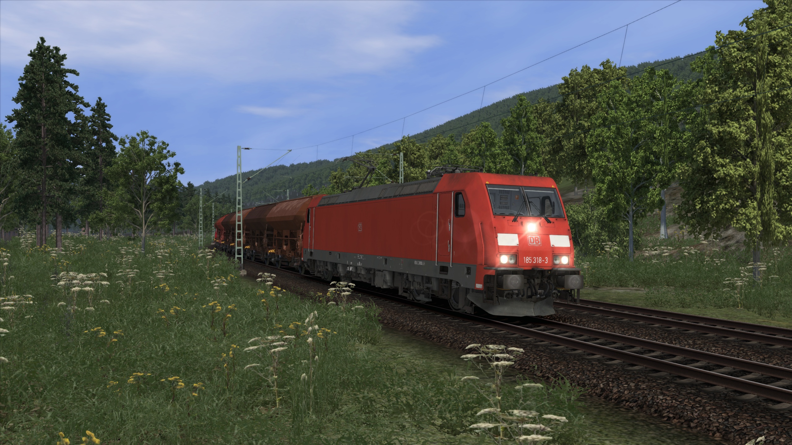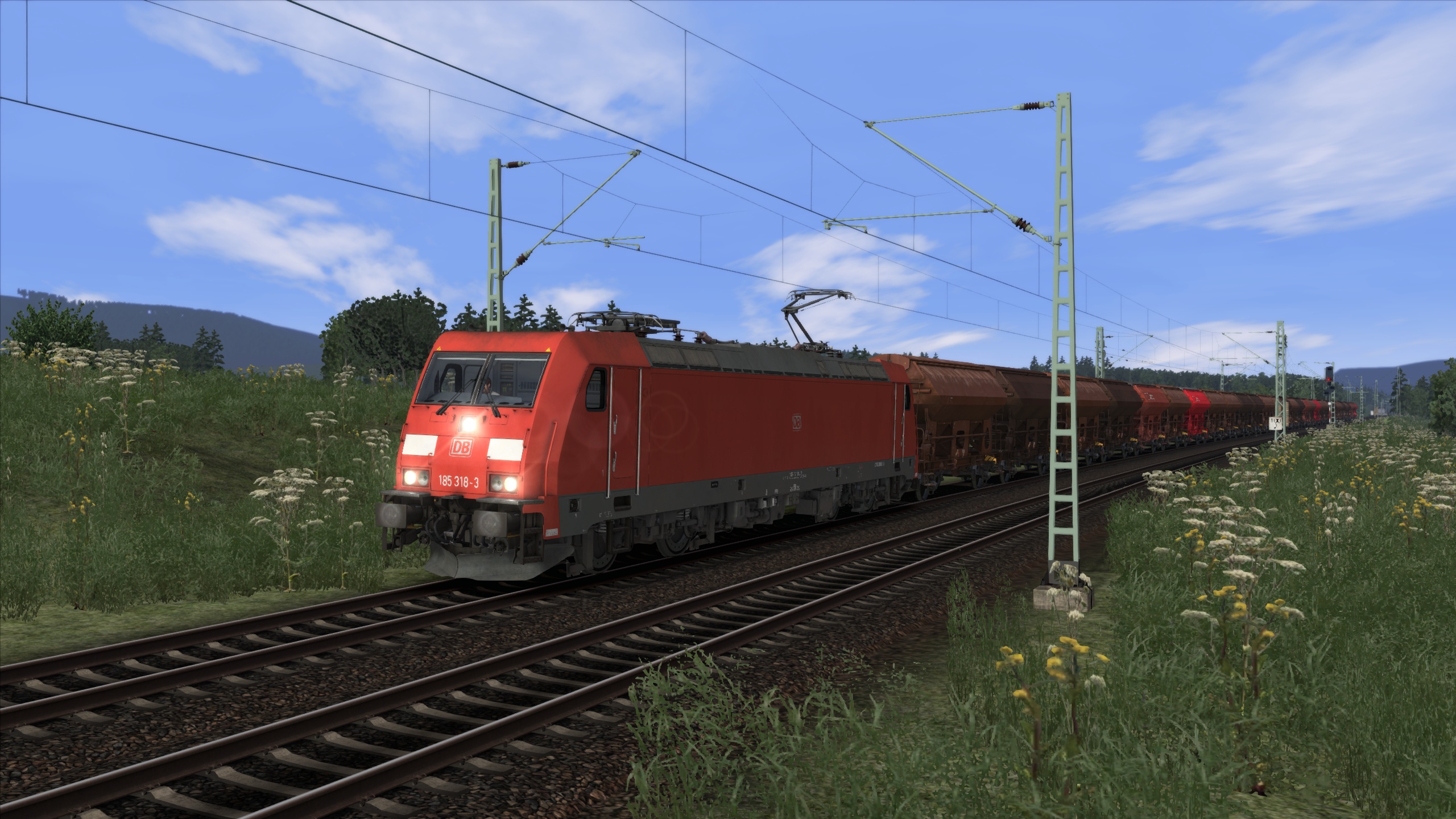 Die BR 185 mit einem Kohlezug.