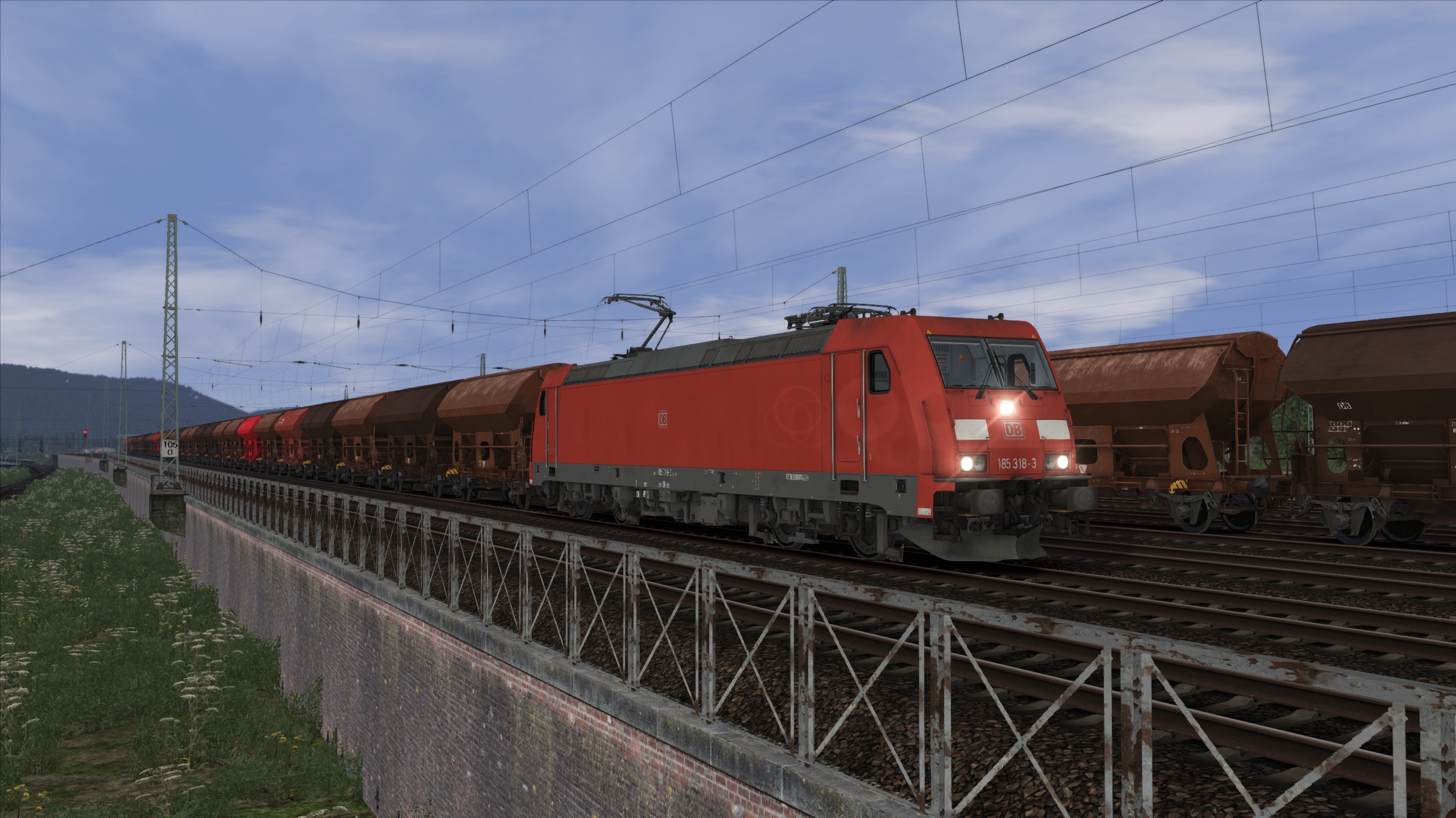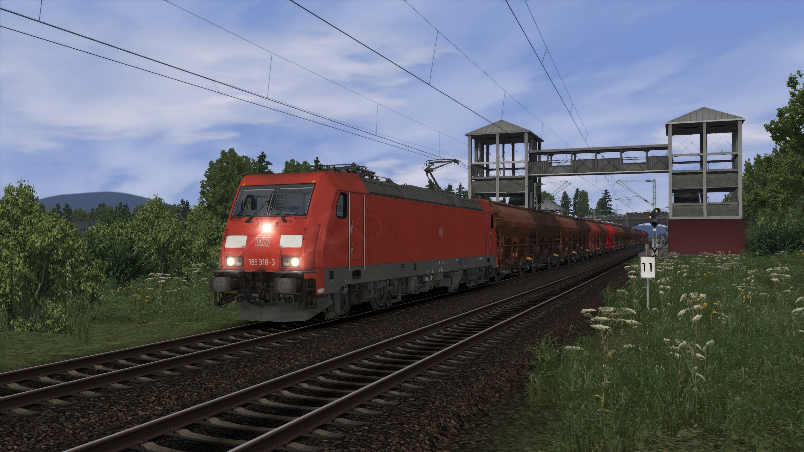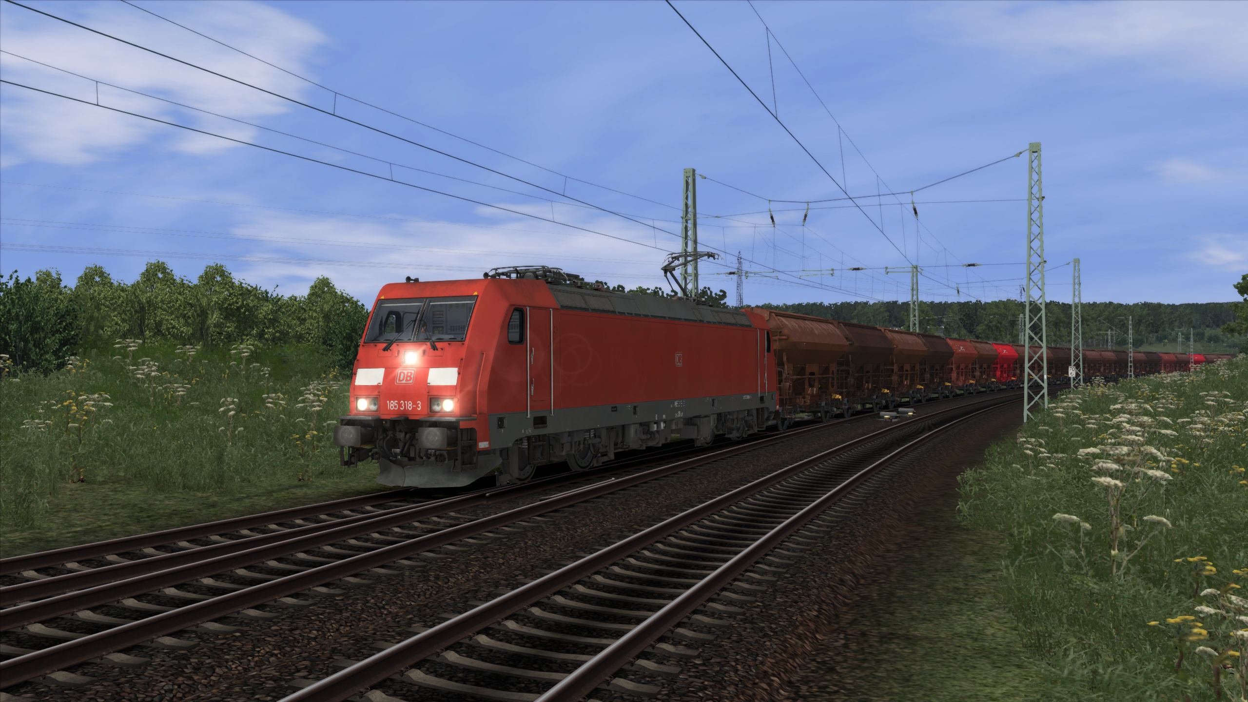 Die BR 185 mit einem Kohlezug.